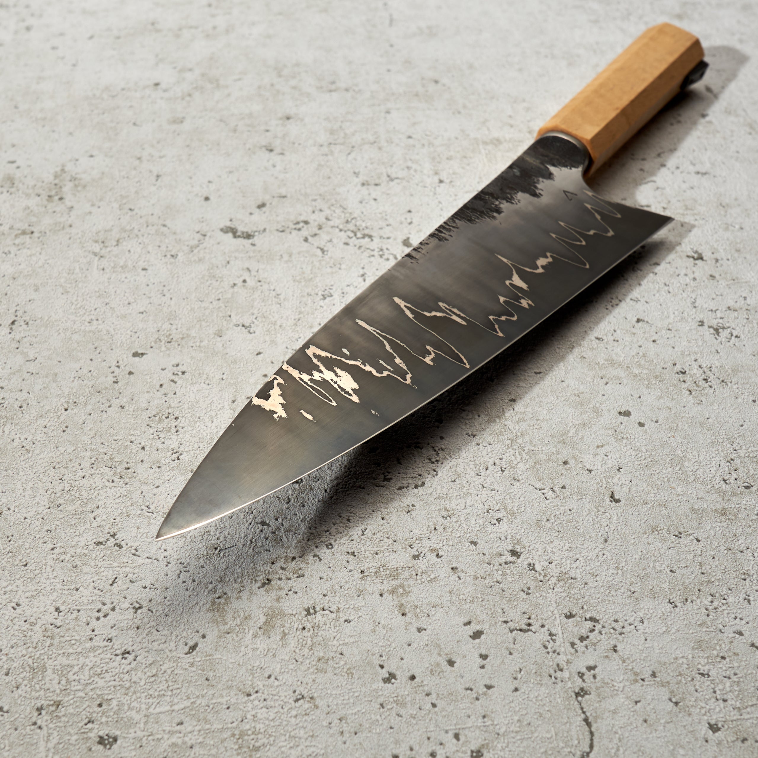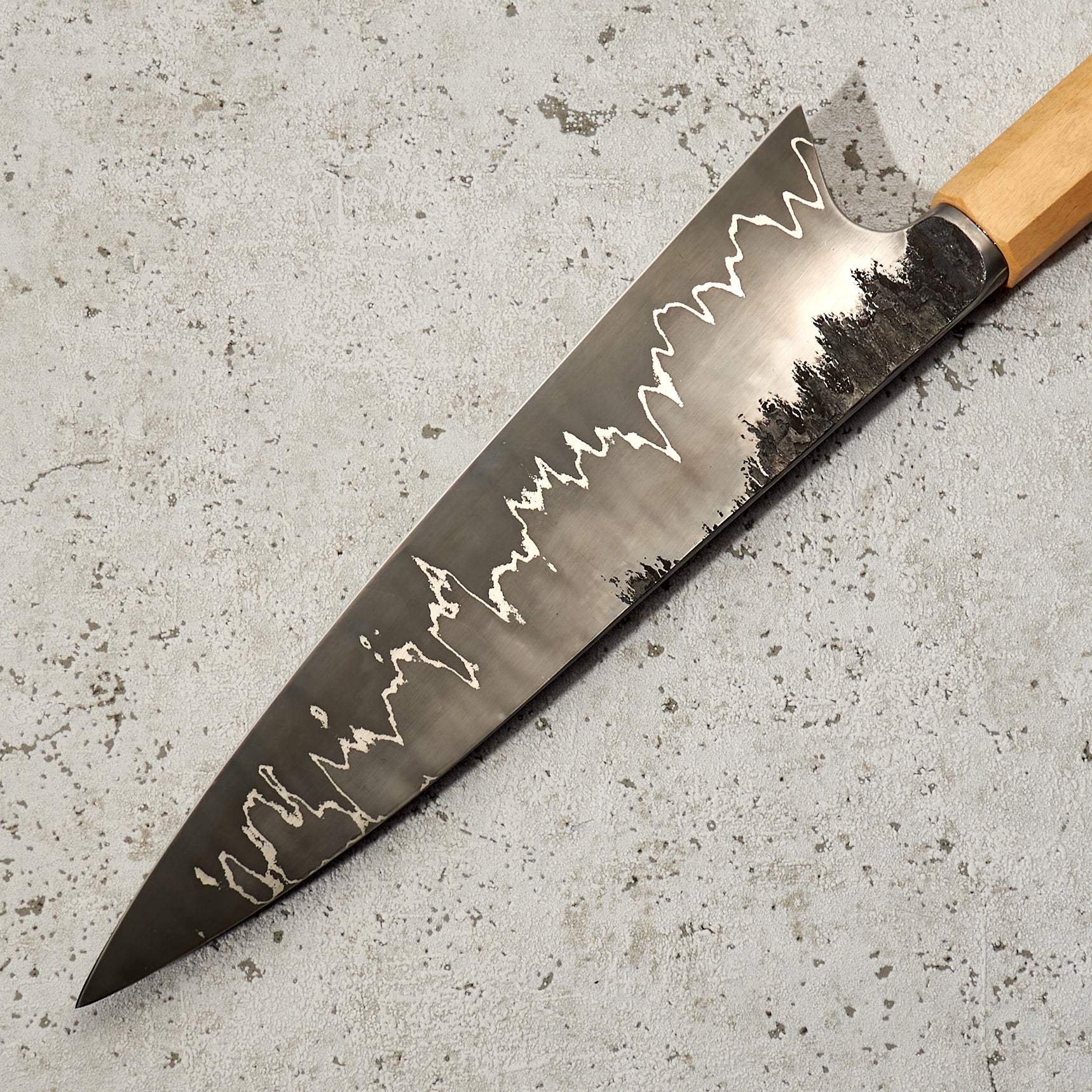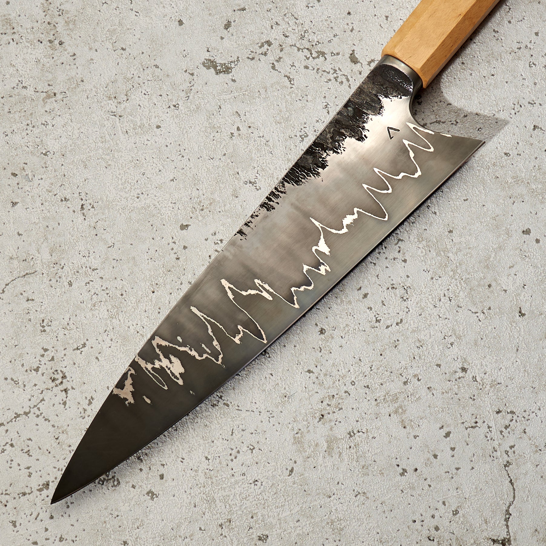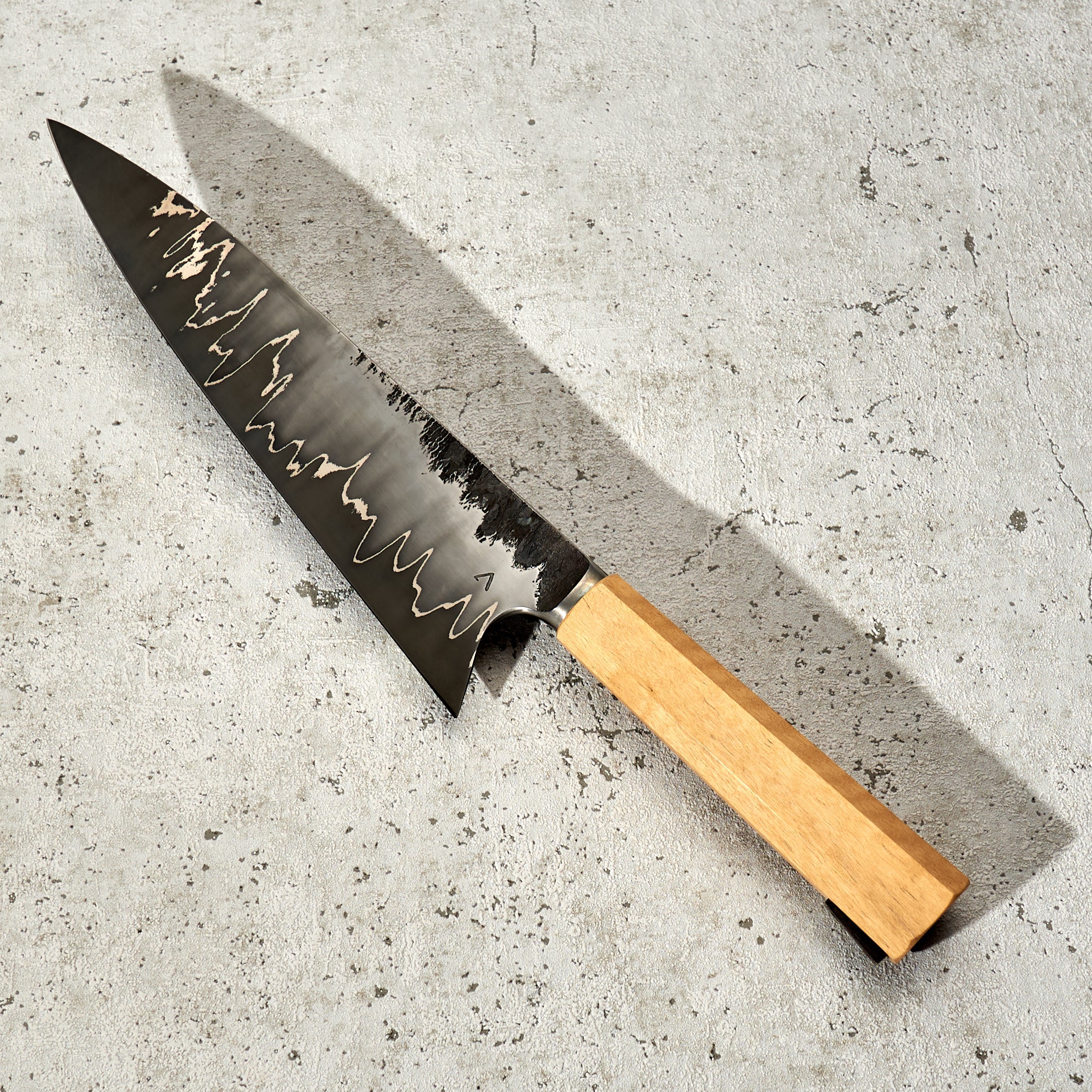 As the company name suggests, Antoine is focused on the art of his creations, but that does not mean his knives lack function or innovation. Foremost to each piece is quality heat treatment, grind and profile. When these elements are perfect Antoine completes each, one of a kind, blade with a unique stylistic treatment, including beautiful Tsuchimi, Damascus and Kurouchi finishes and custom shaped handles like his Hephaestus integral handle series.