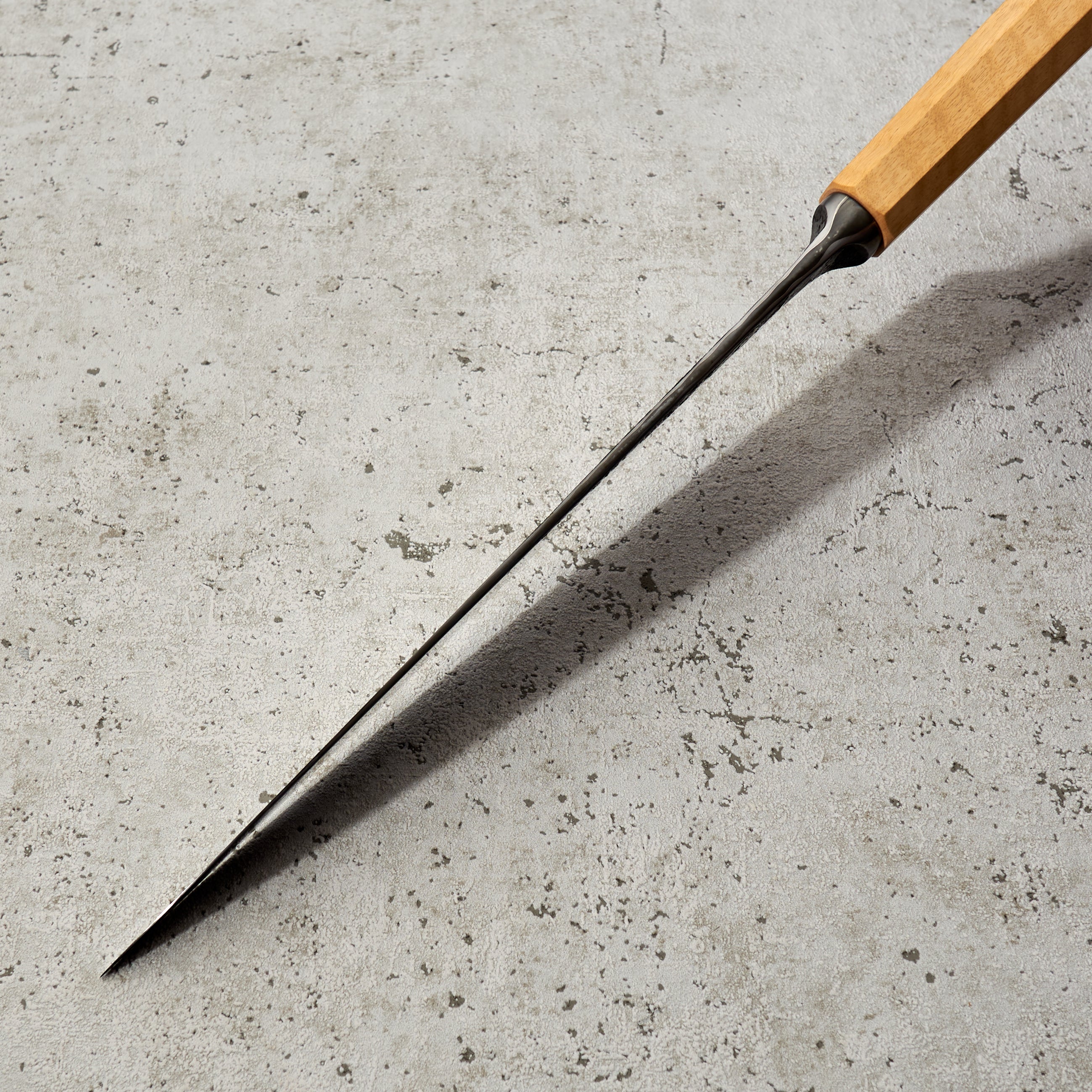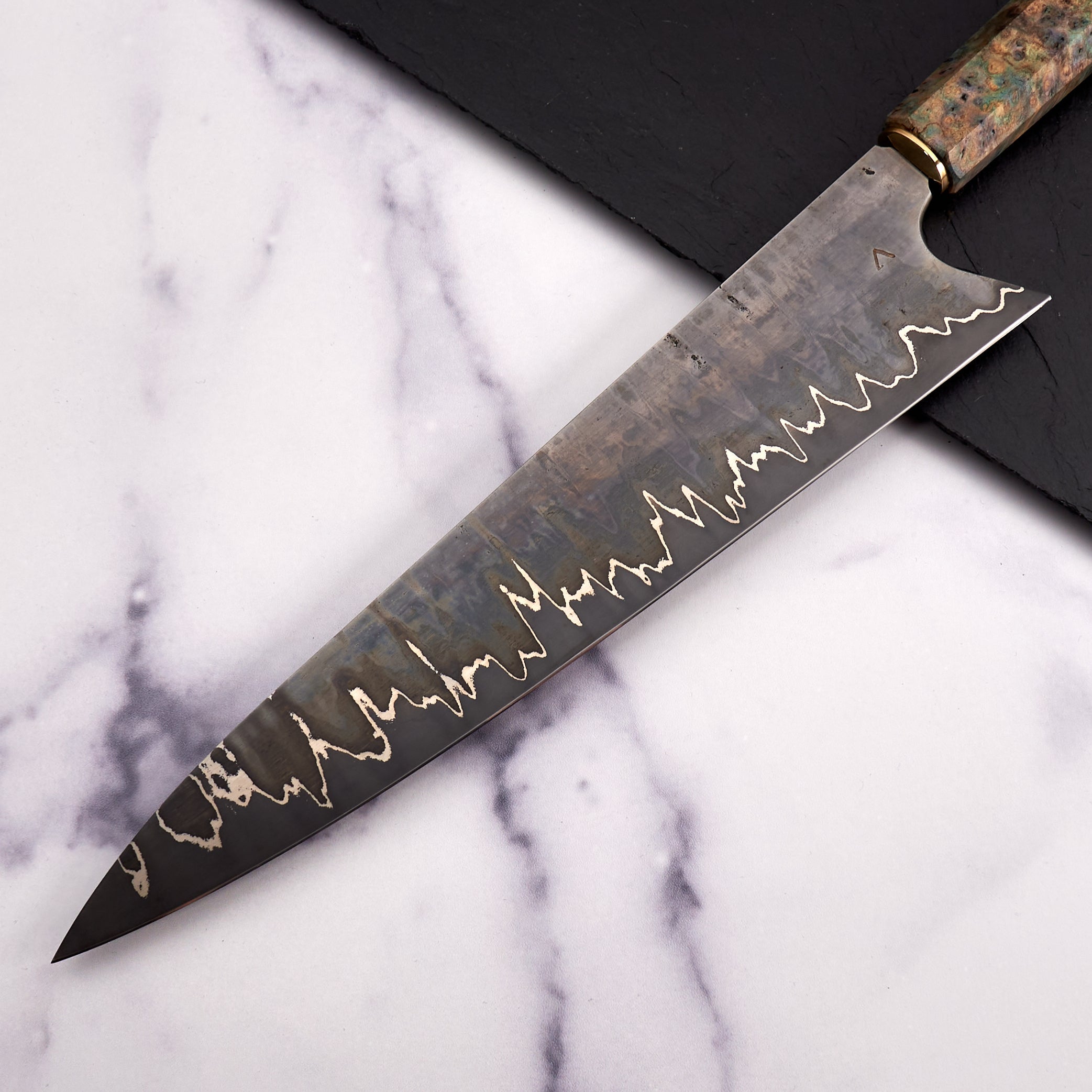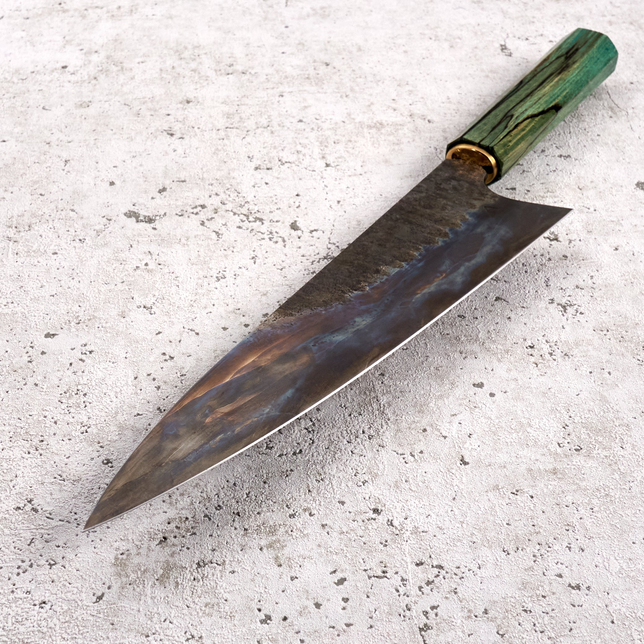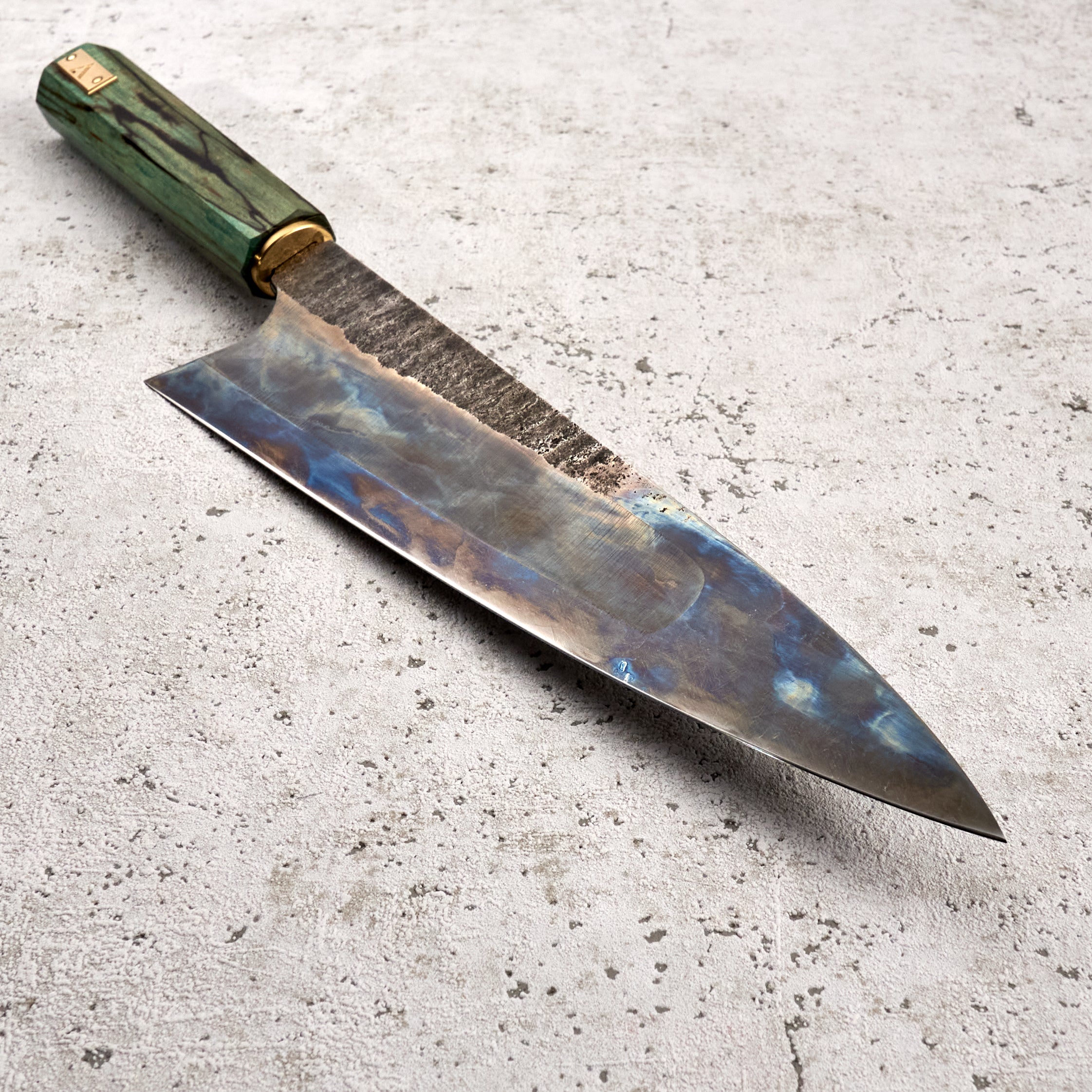 As the company name suggests, Antoine is focused on the art of his creations, but that does not mean his knives lack function or innovation. Foremost to each piece is quality heat treatment, grind and profile. When these elements are perfect Antoine completes each, one of a kind, blade with a unique stylistic treatment, including beautiful Tsuchimi, Damascus and Kurouchi finishes and custom shaped handles like his Hephaestus integral handle series.