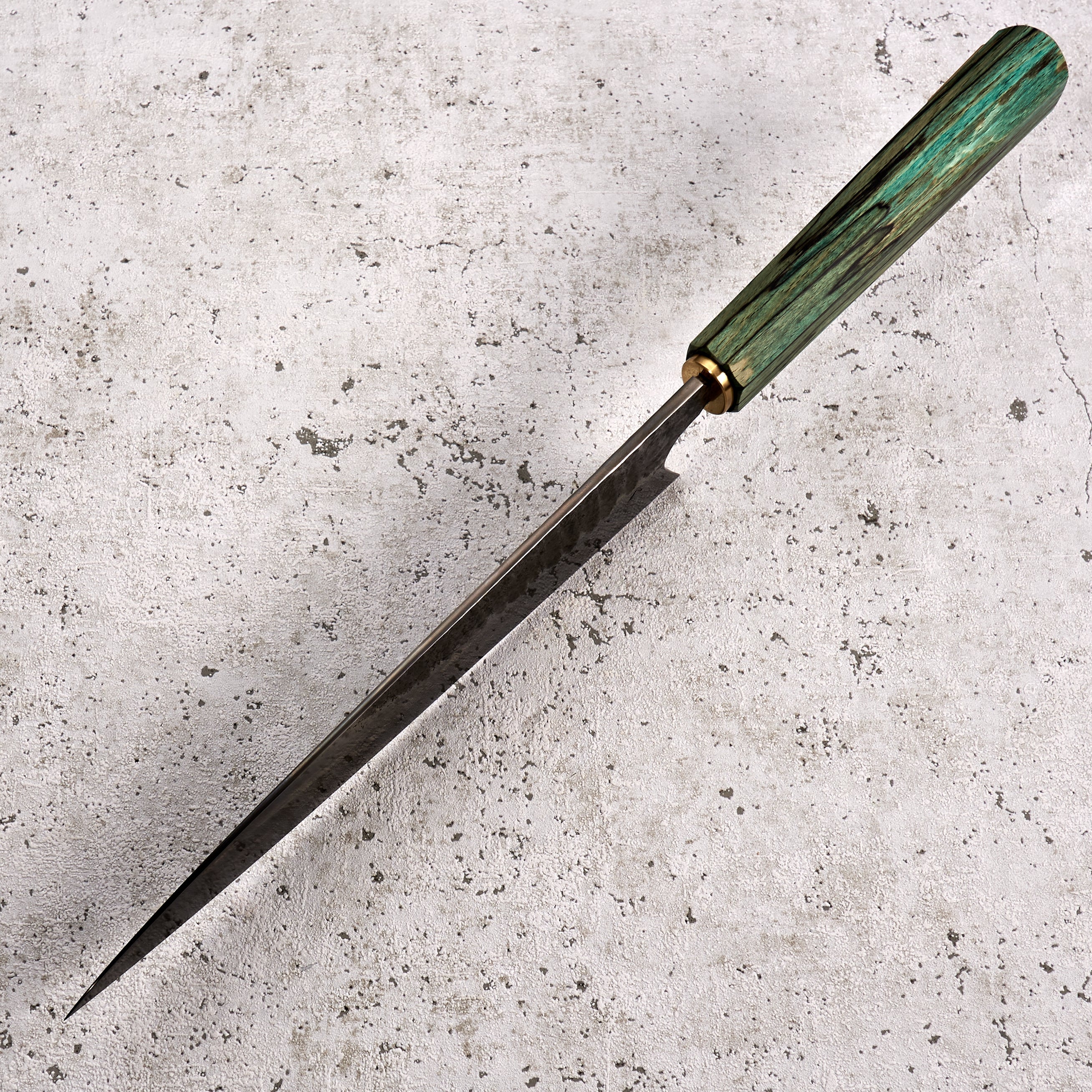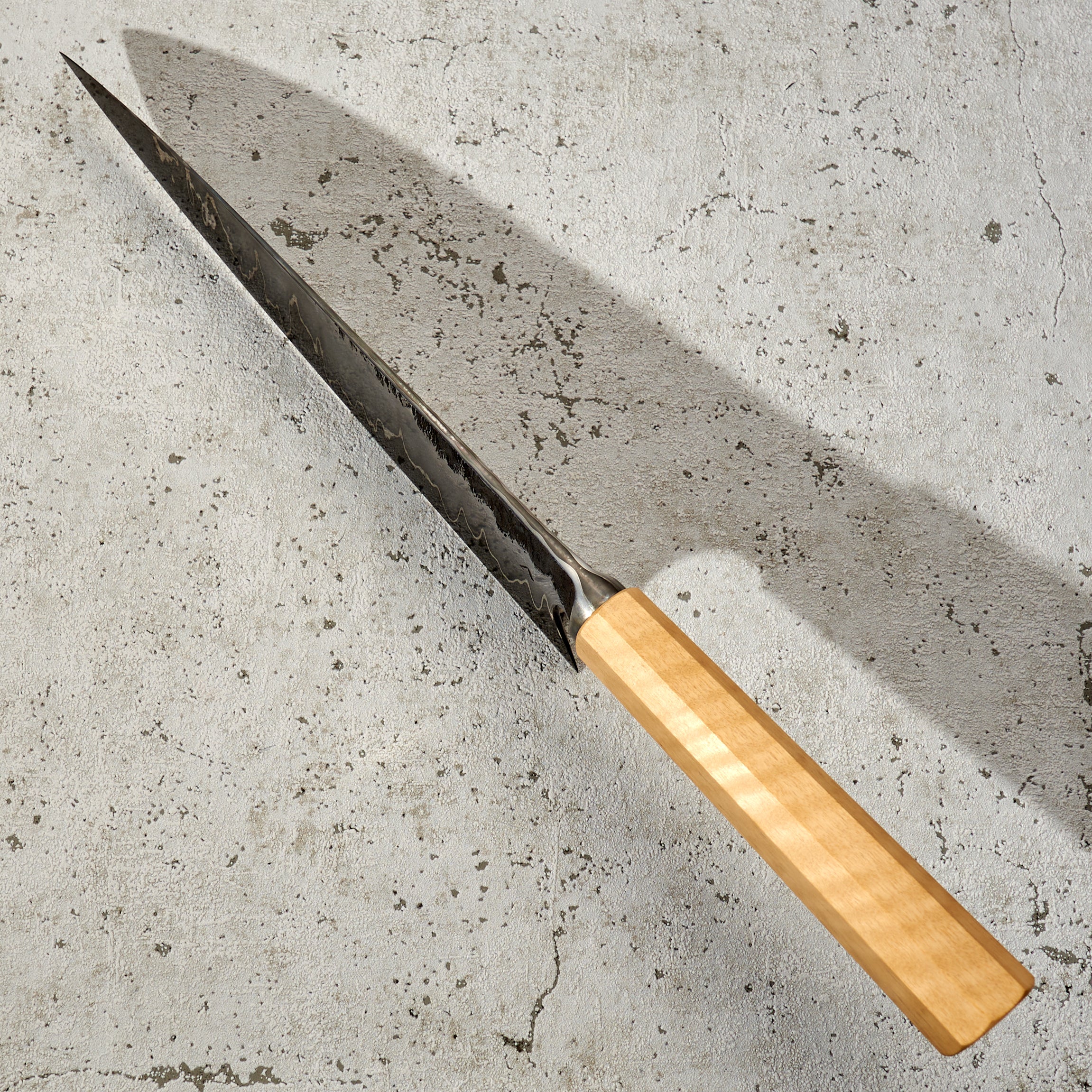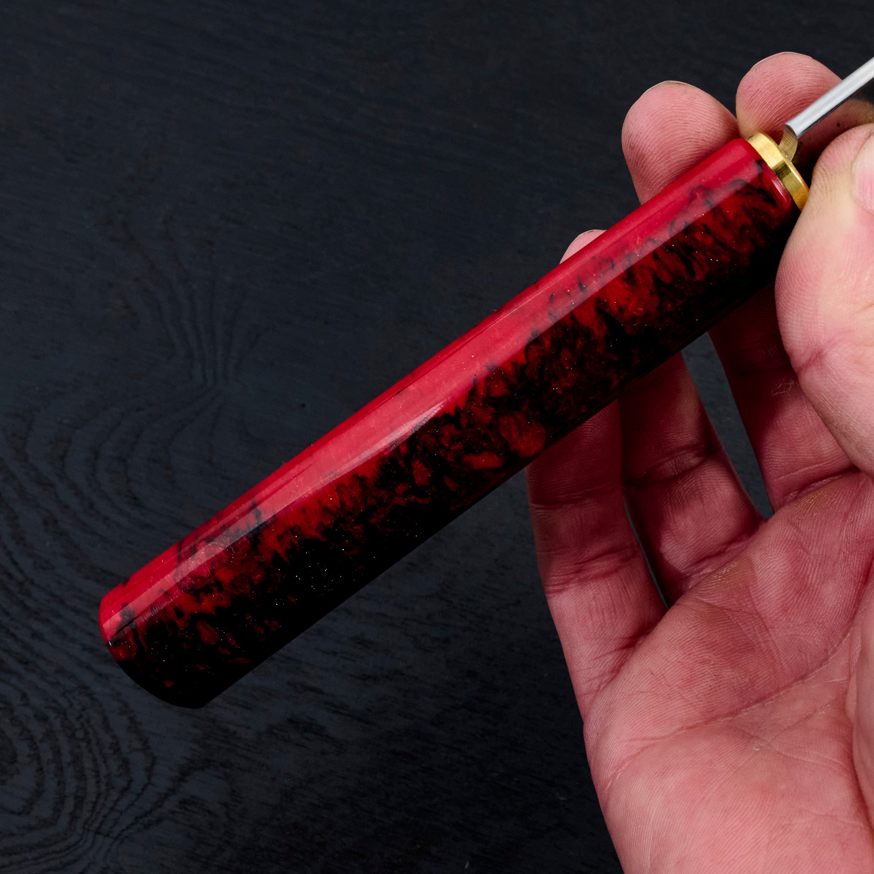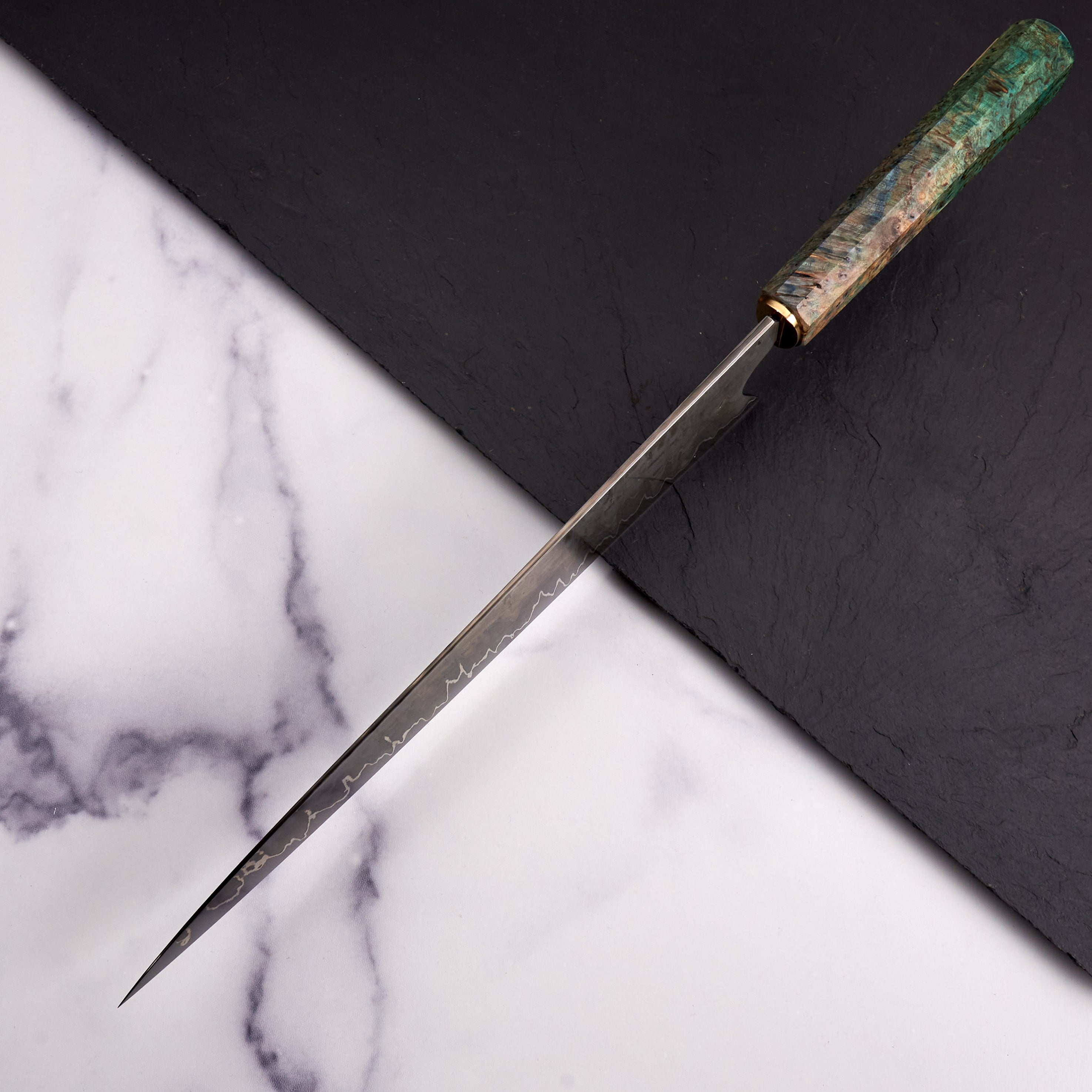 As the company name suggests, Antoine is focused on the art of his creations, but that does not mean his knives lack function or innovation. Foremost to each piece is quality heat treatment, grind and profile. When these elements are perfect Antoine completes each, one of a kind, blade with a unique stylistic treatment, including beautiful Tsuchimi, Damascus and Kurouchi finishes and custom shaped handles like his Hephaestus integral handle series.