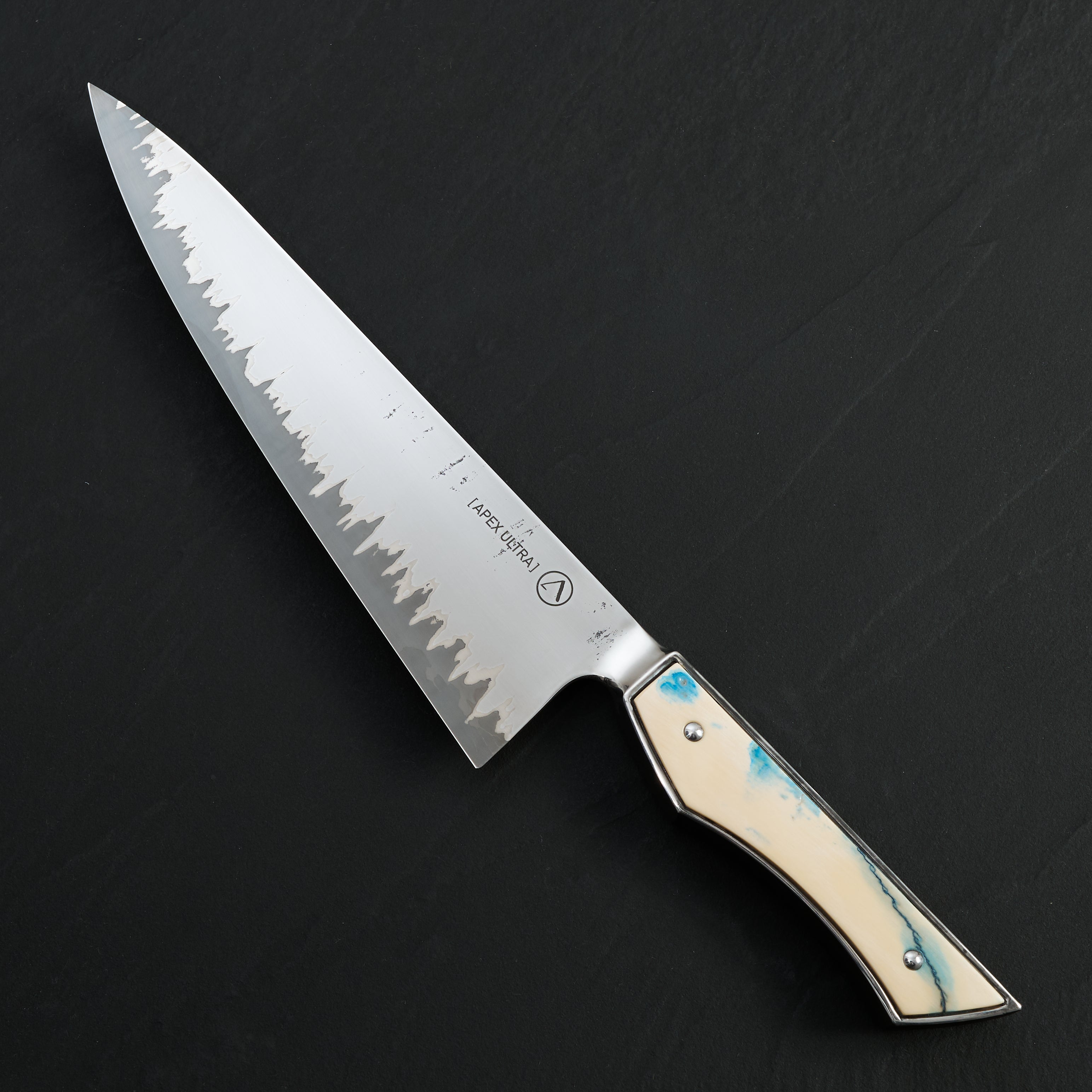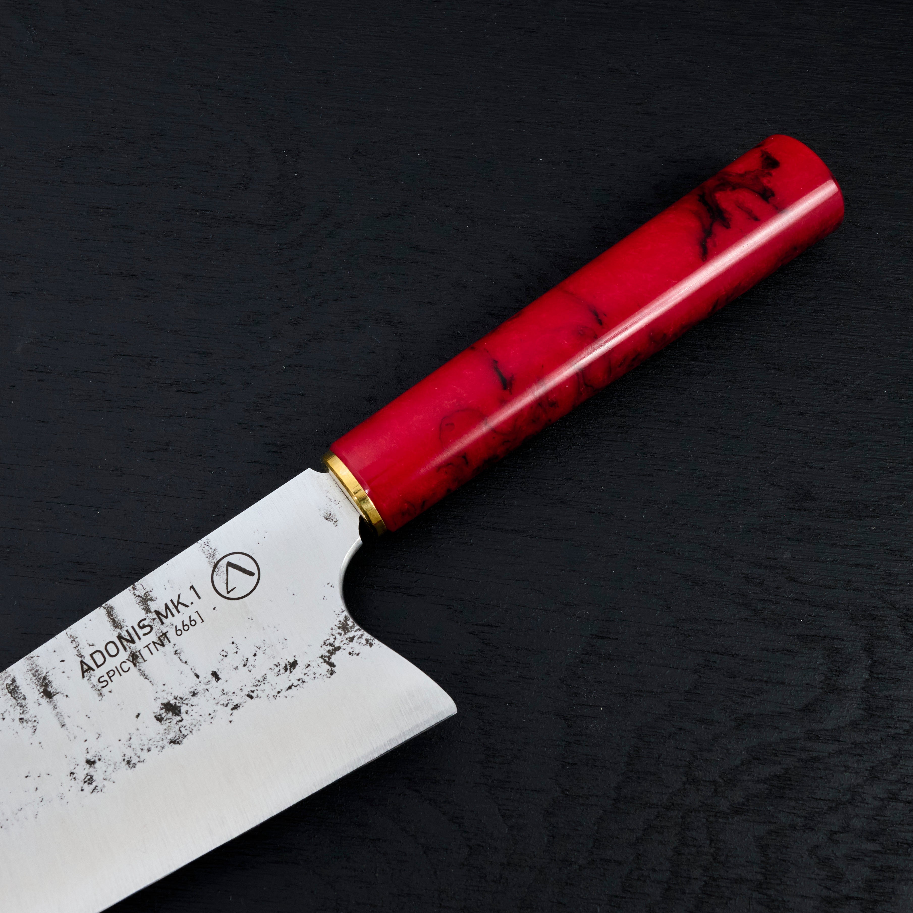 Adonis blades are forged out of a range of steels including Apex Ultra and premium German tool steels like 1.2519 & 1.2419.05, along with in house forged Damascus. These are all premium steels, with great edge retention and sharpen-ability. Antoine is a master craftsmen that cares deeply about his art. If you are lucky enough to be able to purchase one of his knives you will have a one of a kind piece of functional art to admire for a lifetime.