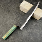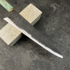 Pronounced Ka-zay, the "Kaze(Wind in Japanese) Series " represents a more traditional approach to knife making for French blacksmith Antoine Kniamen. The Kaze series features a fully forged geometry, low bevels and a traditional blacksmith finish on the face of the blade. The pitch black Kurouchi gradually passes to a silky smooth near mirror polish on the bevels.