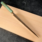 Finished on whetstones the bevels are delightfully consistent and perfectly convex. A lovely sharp workhorse geometry, with Antoine's classic Gyuto profile complete an absolute stunning piece of work from the house of Adonis. If you enjoy maintaining your knives on whetstones, you will certainly appreciate this piece.