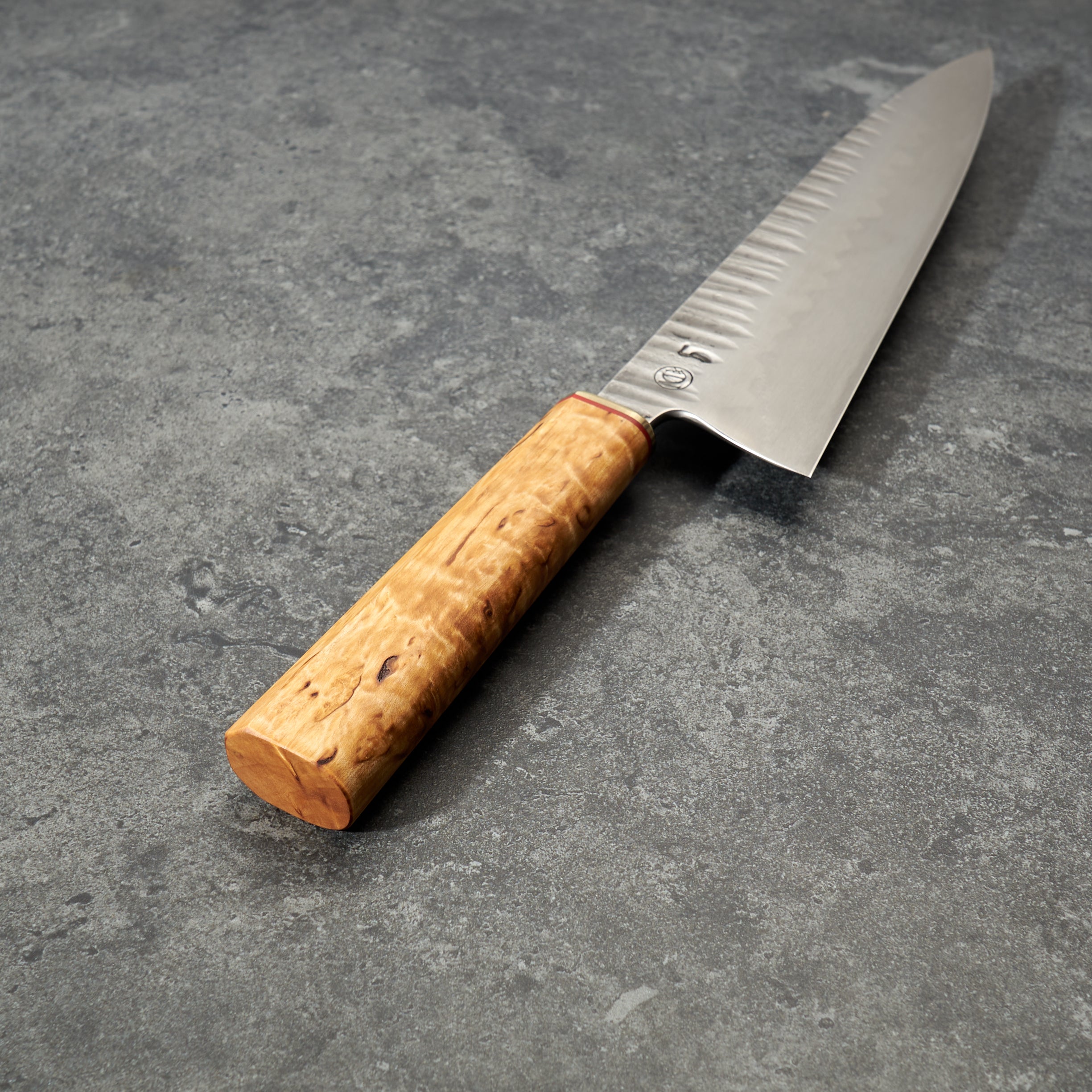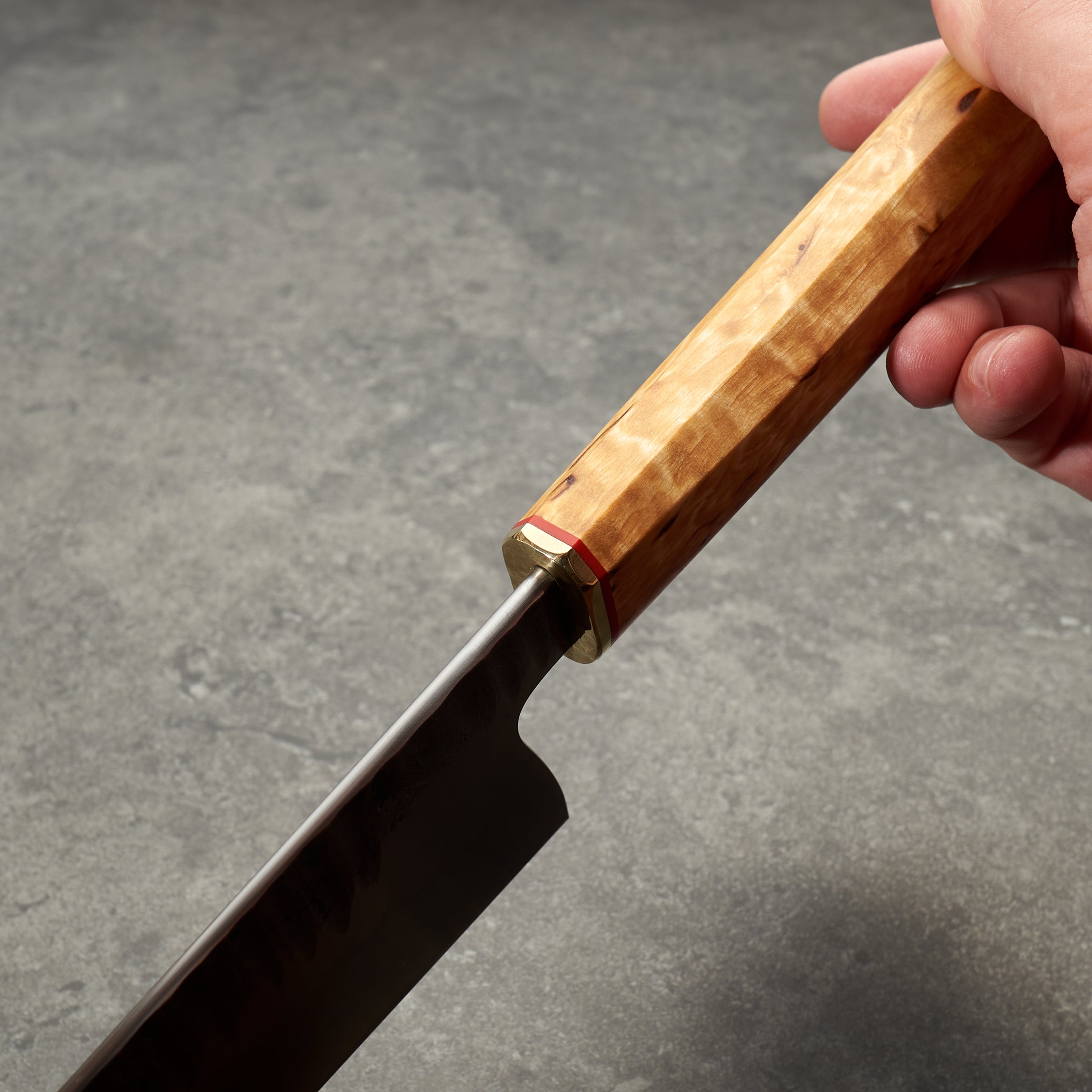 The handle is made from Masur birch, red G10 and brass a contemporary, yet classic look fitting for the Classic MCX Gyuto and also a tip of the hat to our design partner Fredrik Spåre.