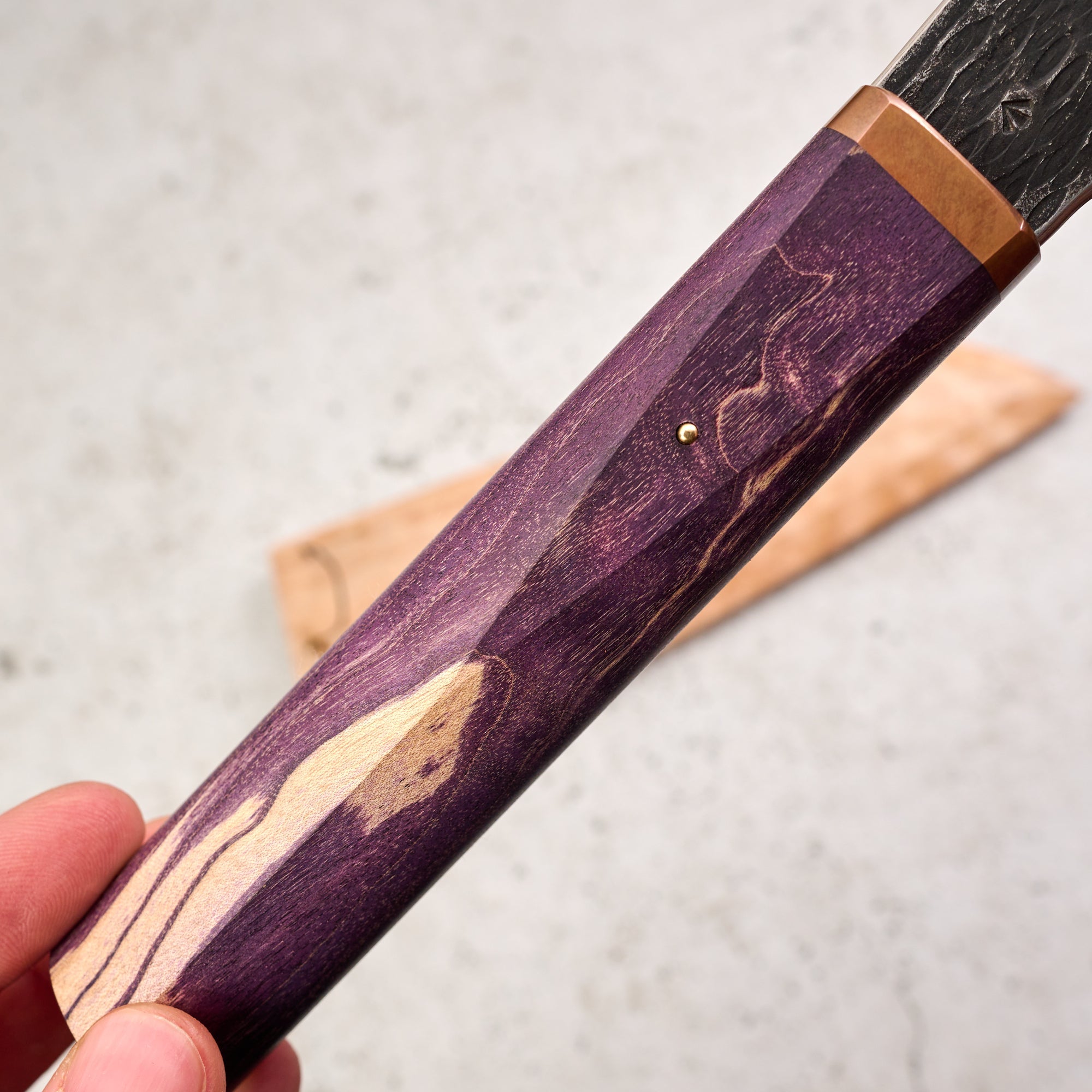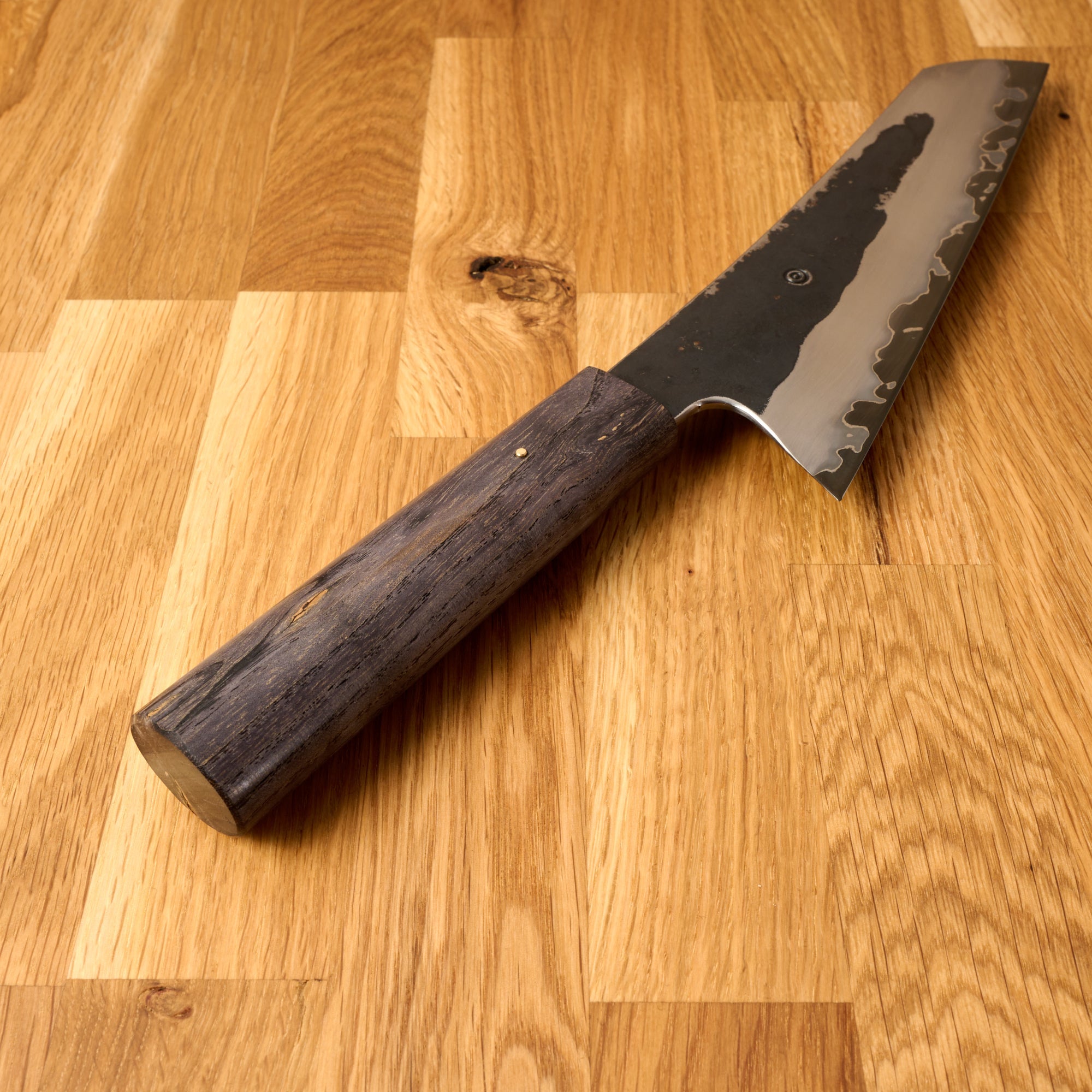 Although his work features some very modern style, his designs are inspired by traditional techniques. James first became interested in knives as a child after a visit to his grandfather, a World War two veteran and owner of a Japanese Katana. It wasn’t until many years later that James would take an interest in the craft though and it was a culinary knife, made by Saji Takeshi, that would eventually inspire James to forge his first knives.