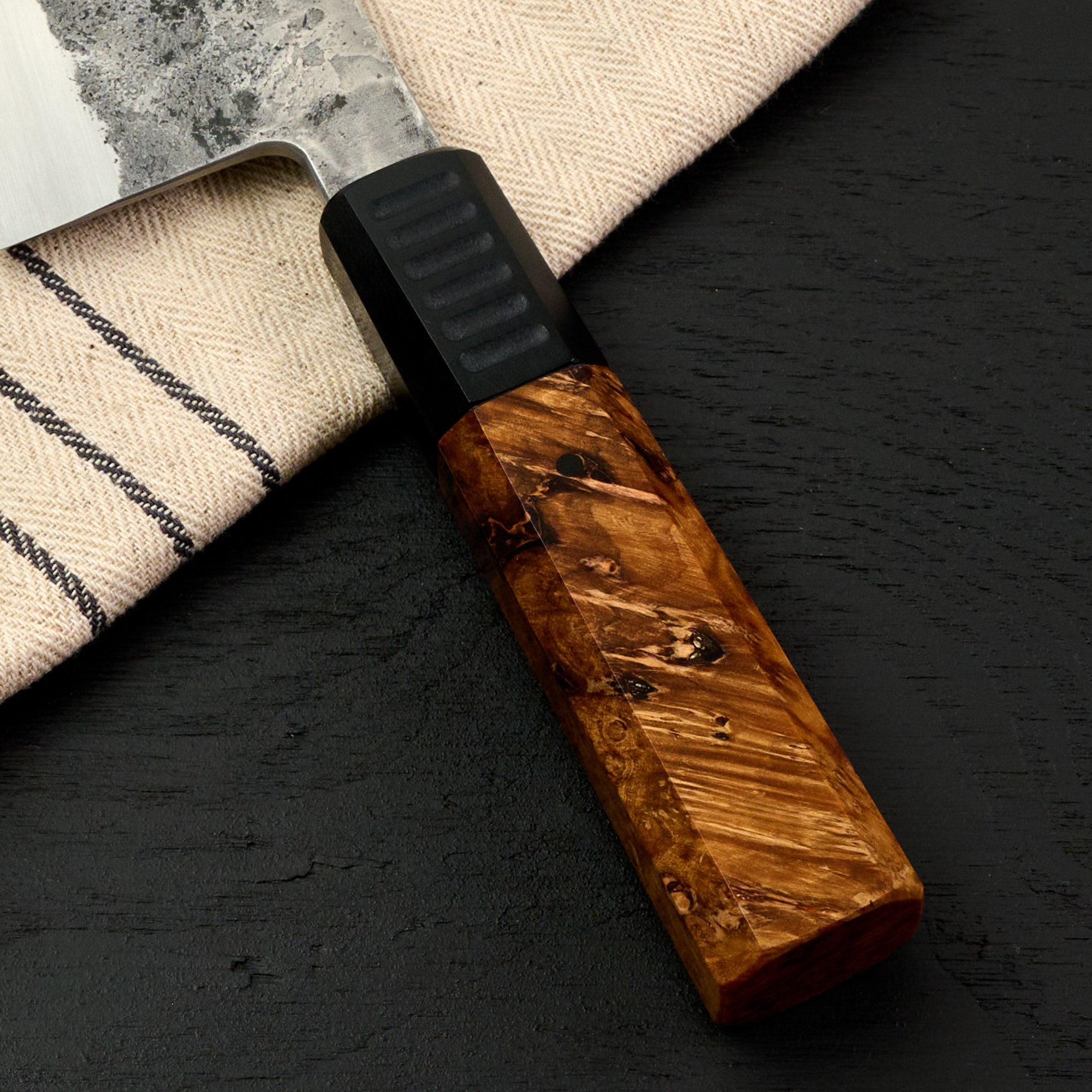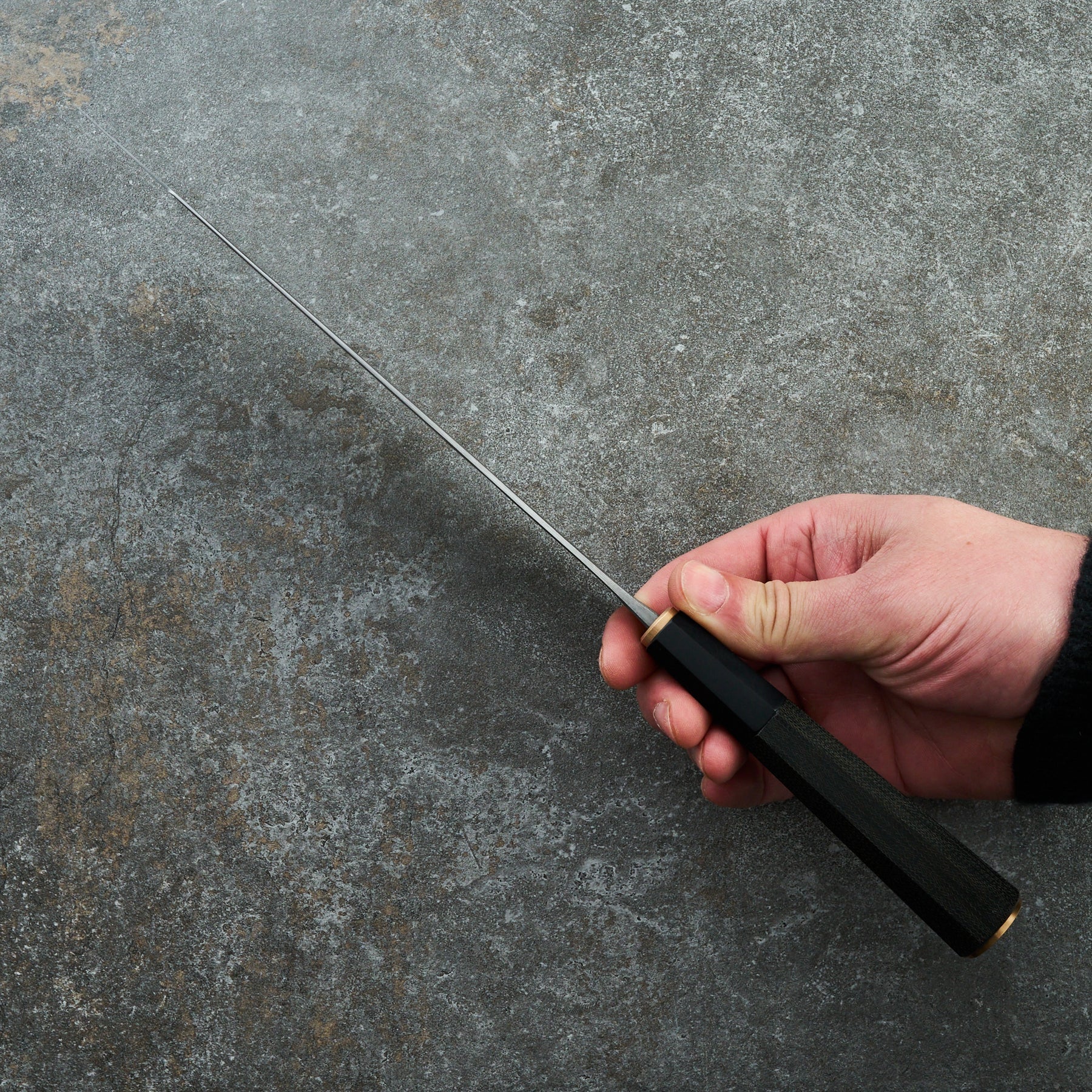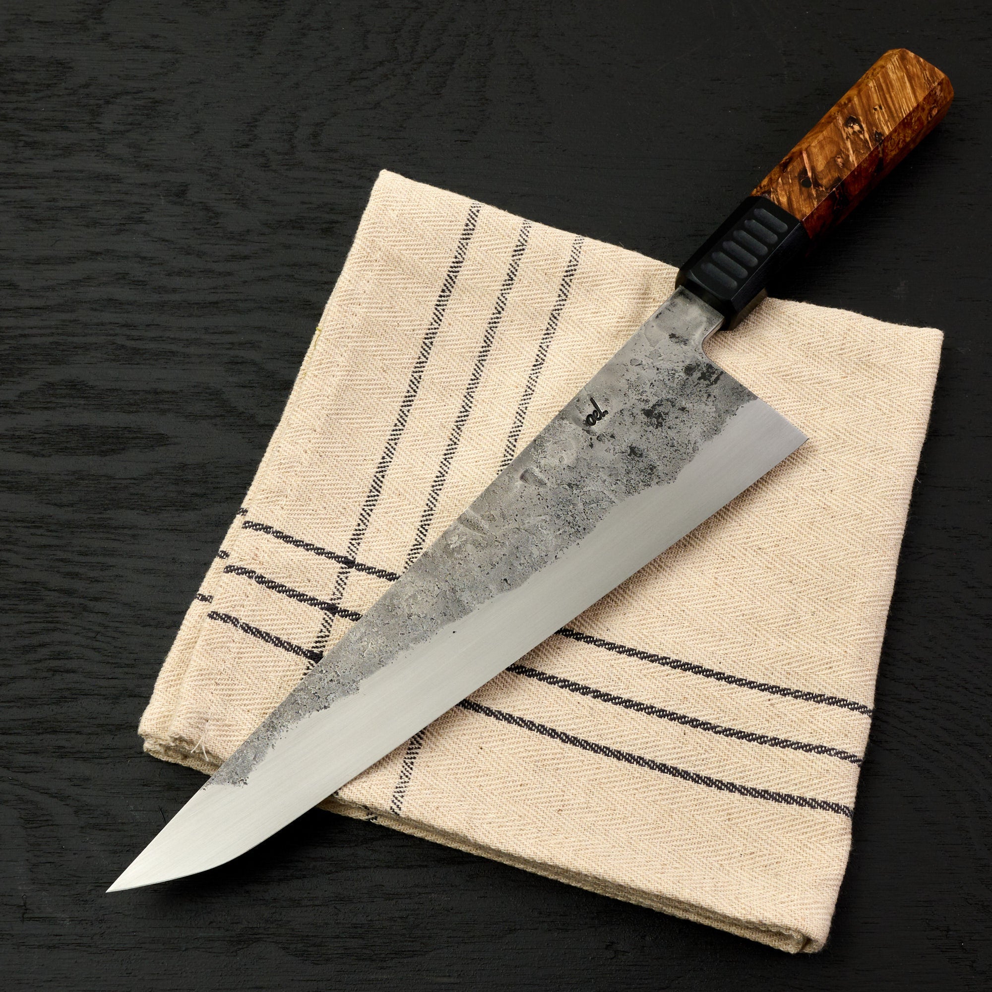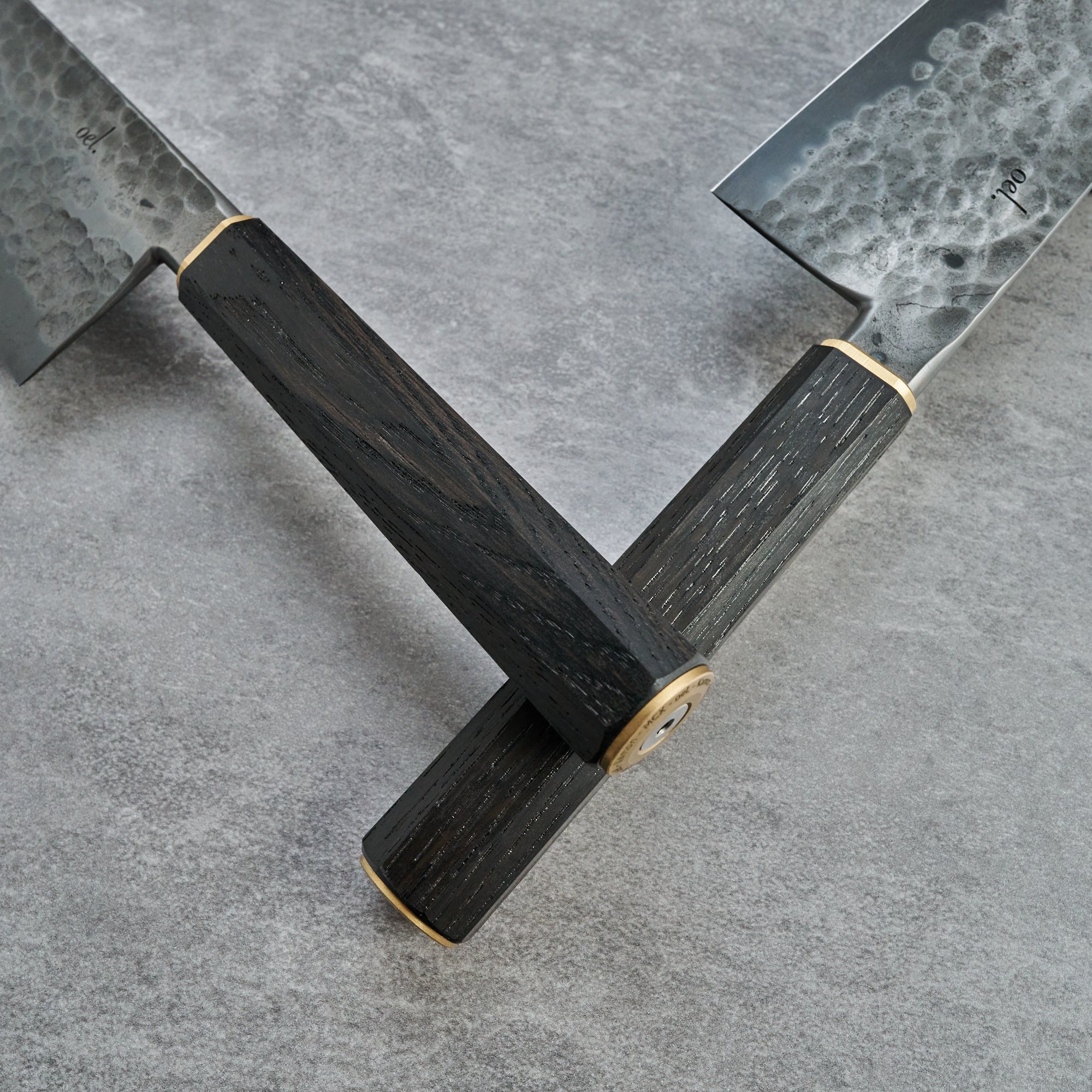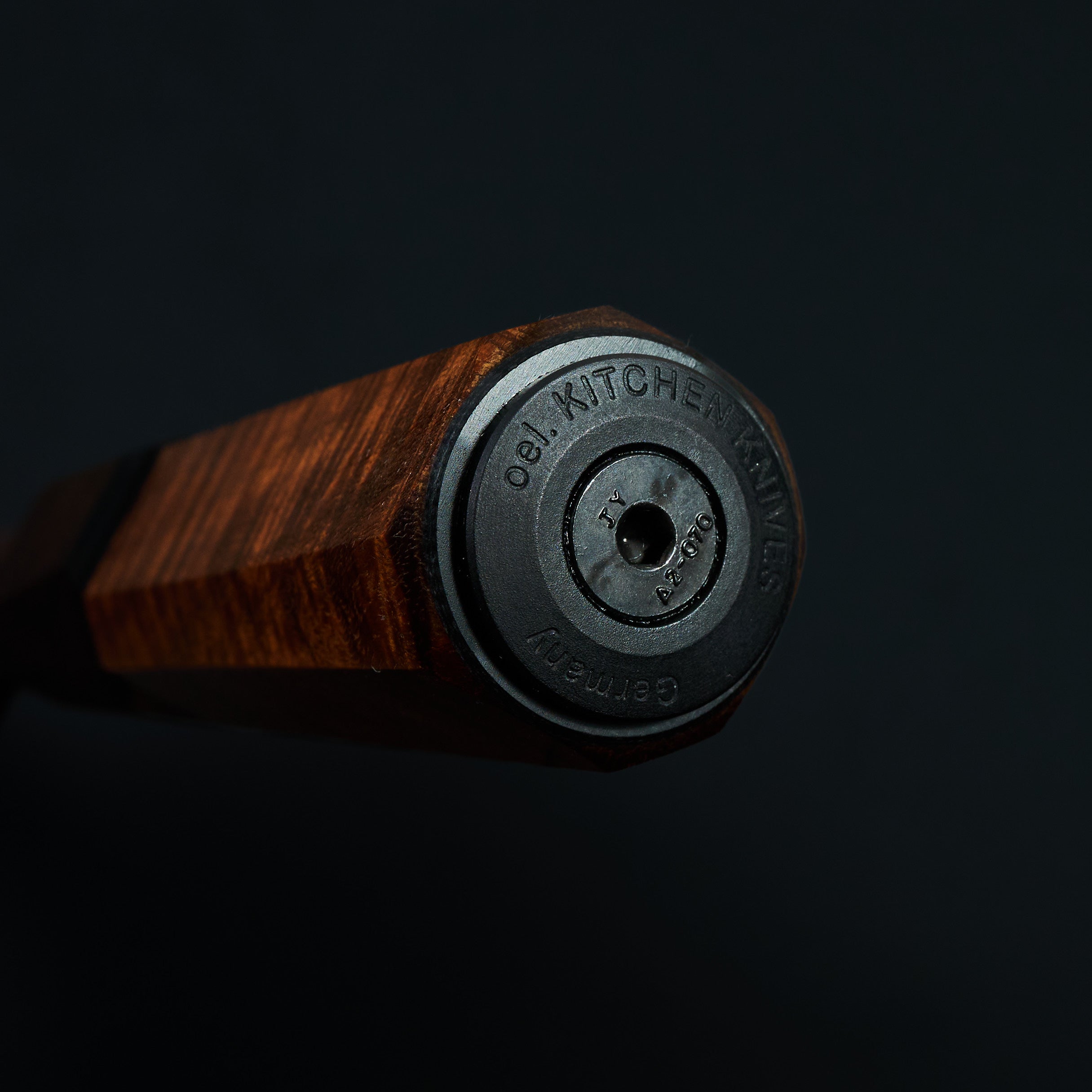 Each knife forged by Oliver features his trademark design, but special care is taken with regard to handle material, steel forging, shaping and heat treatment.The result is a beautifully sharp knife with amazing cutting performance and a clean, harmonious design that will look superb in any kitchen.