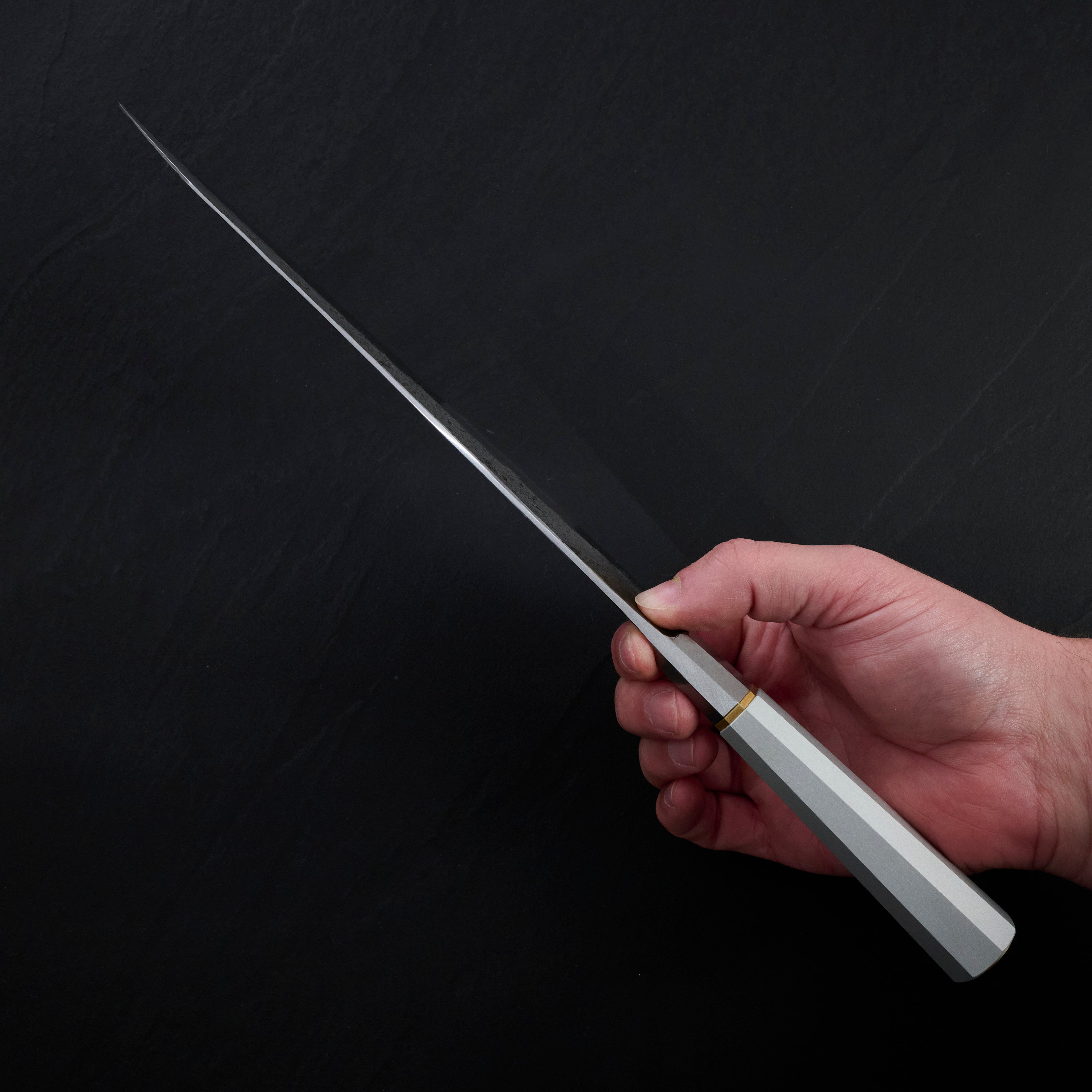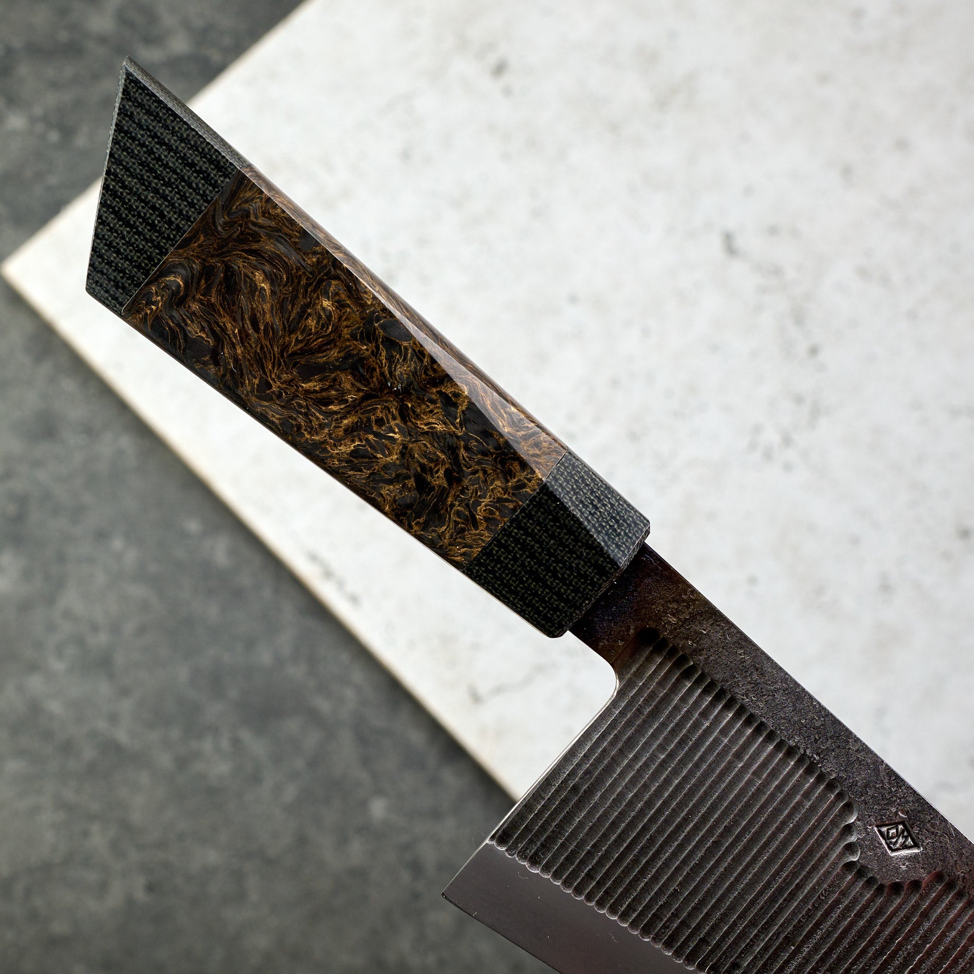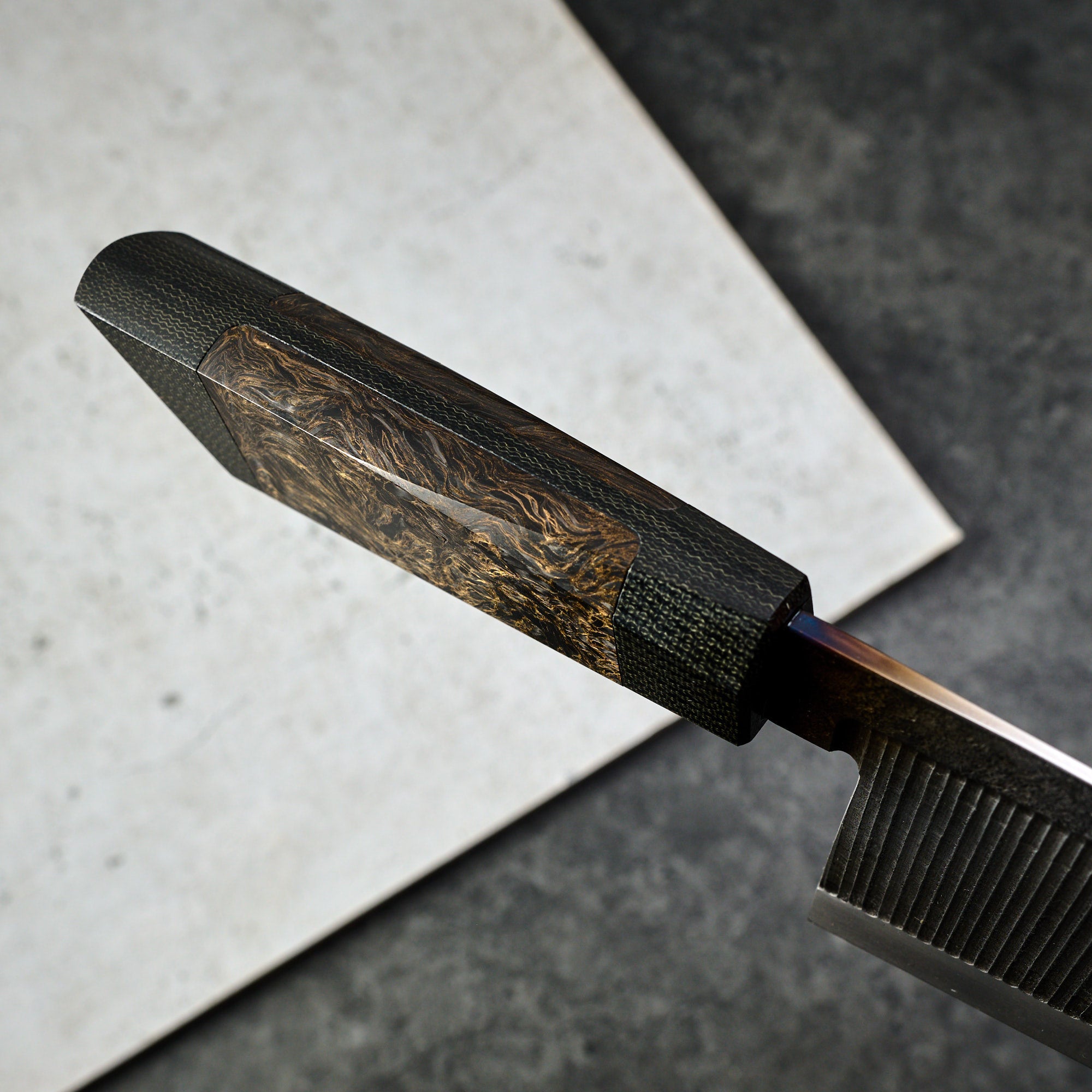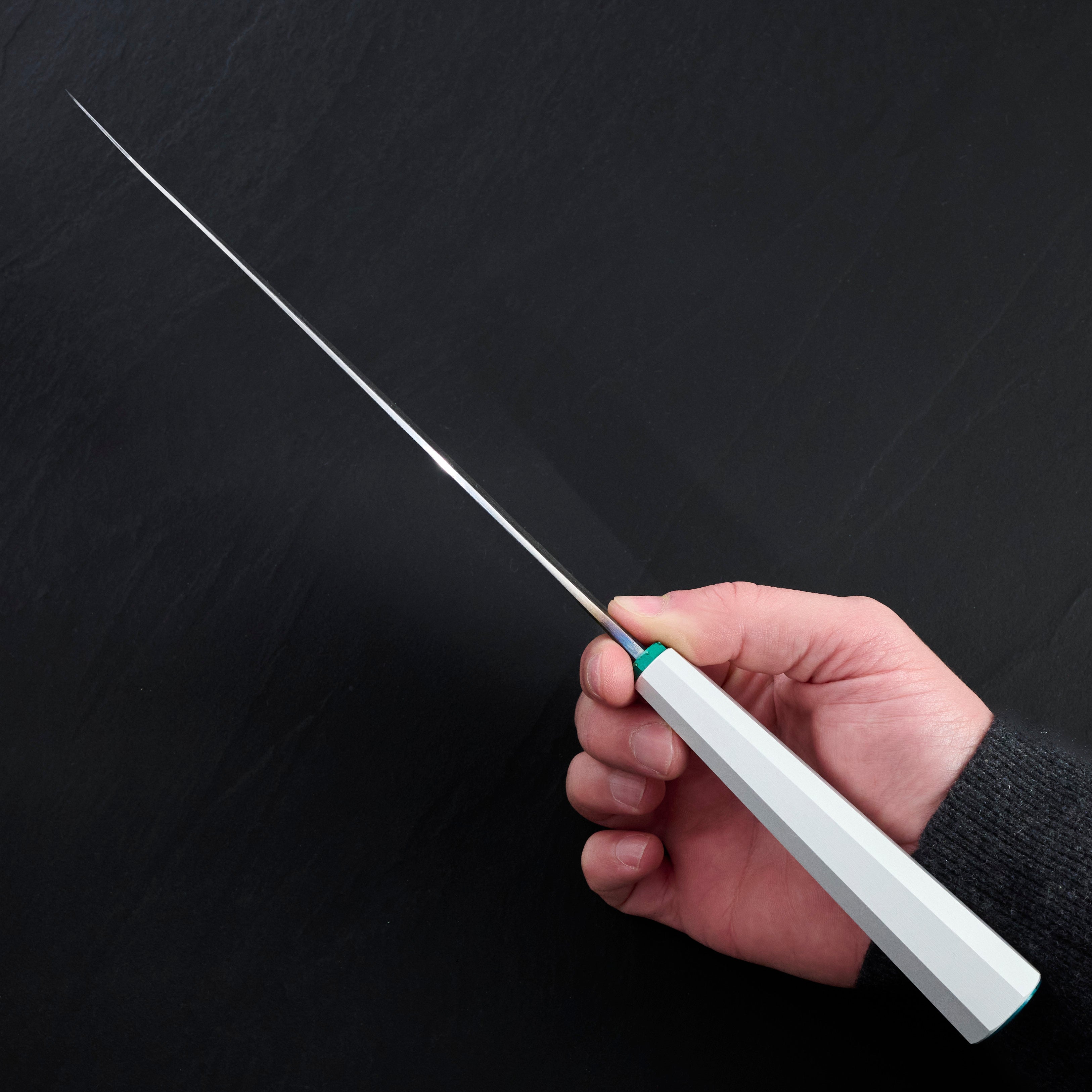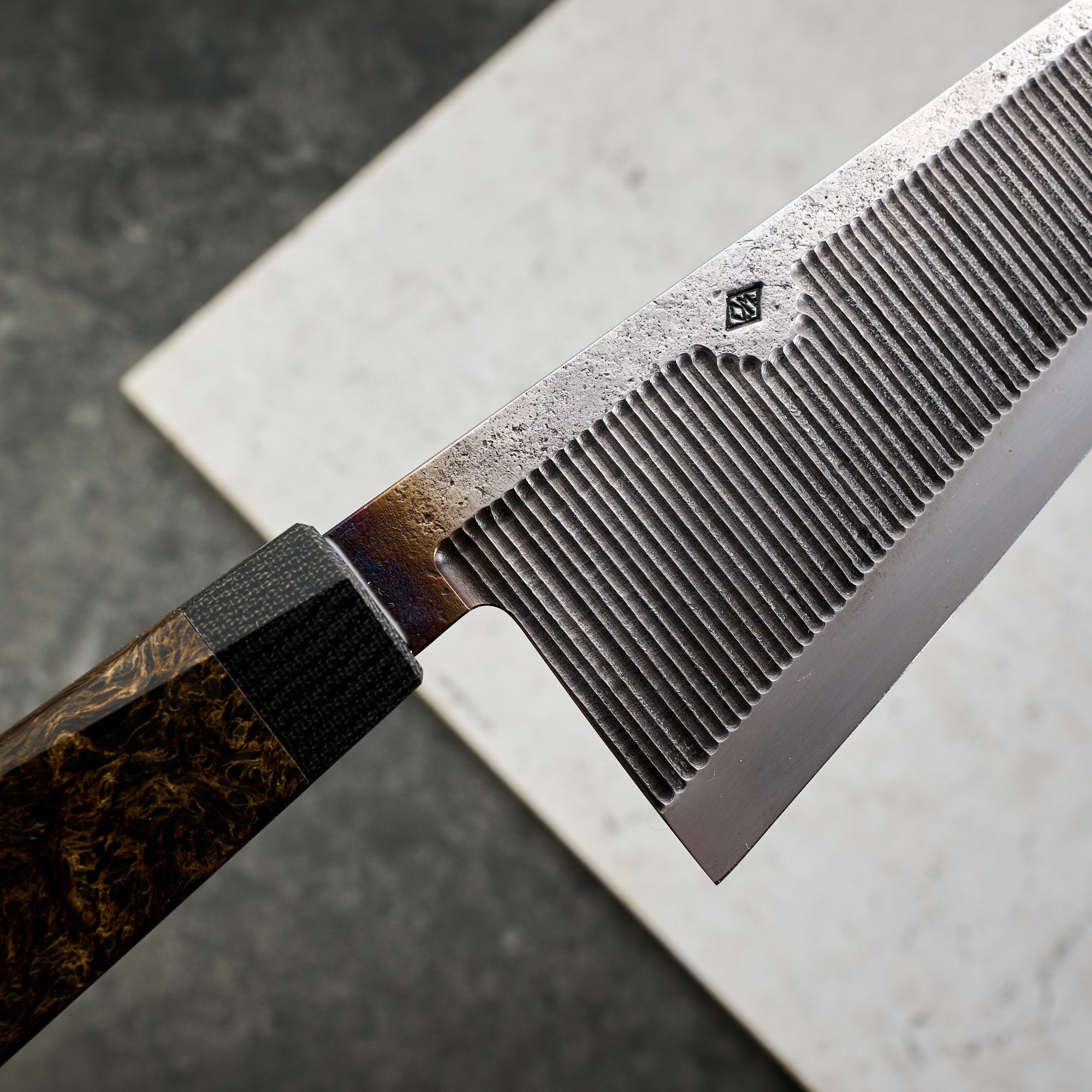 Each knife forged by Oliver features his trademark design, but special care is taken with regard to handle material, steel forging, shaping and heat treatment.The result is a beautifully sharp knife with amazing cutting performance and a clean, harmonious design that will look superb in any kitchen.
