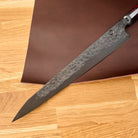 A hand forged 315mm Sujihiki slicer from Austrian blacksmith Benjamin Kamon. There is enough precision ground and hardened cutting edge here to cover all your slicing needs. Whether you are a collector of exquisite, handmade culinary knives or perhaps a restaurant owner looking for something special for service, this is going to be a showstopper.