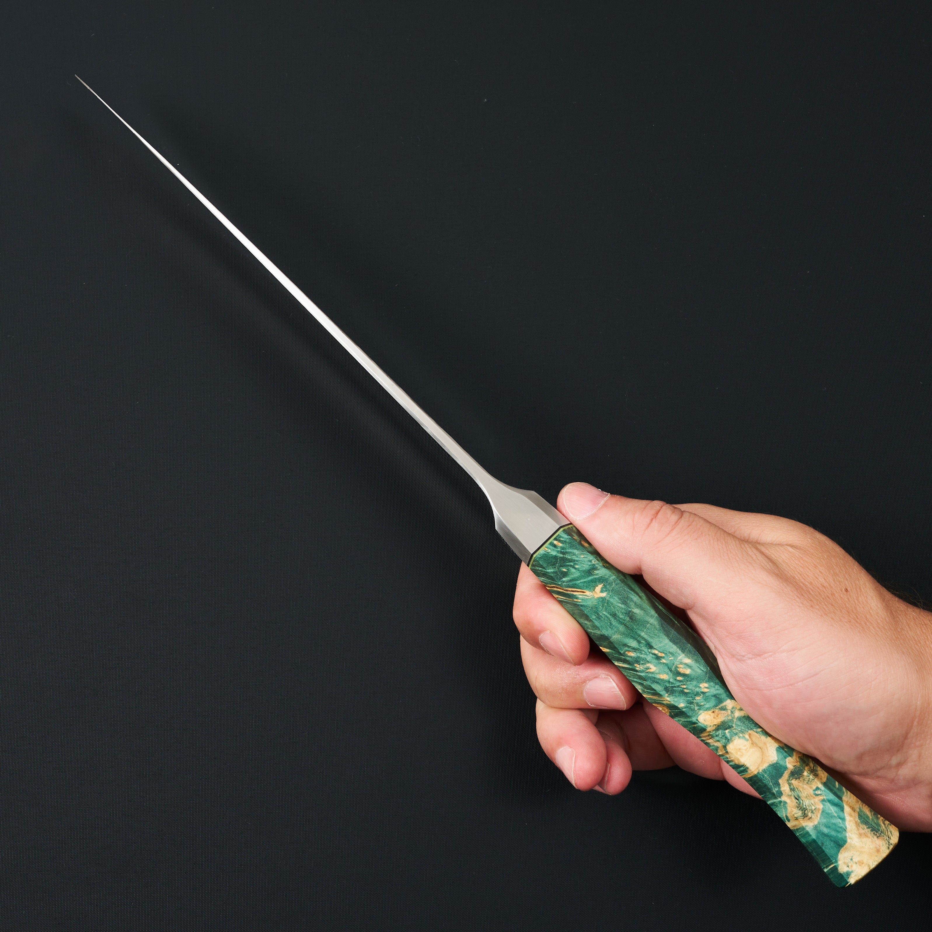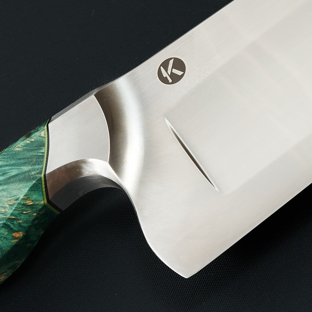 The curated selection of kitchen knives found on this page are unique, one of a kind or very rare hand forged kitchen knives. This is art meets function or functional art and in some cases we would say living art as is the case with the high carbon blades like honyaki knives that produce natural patina.