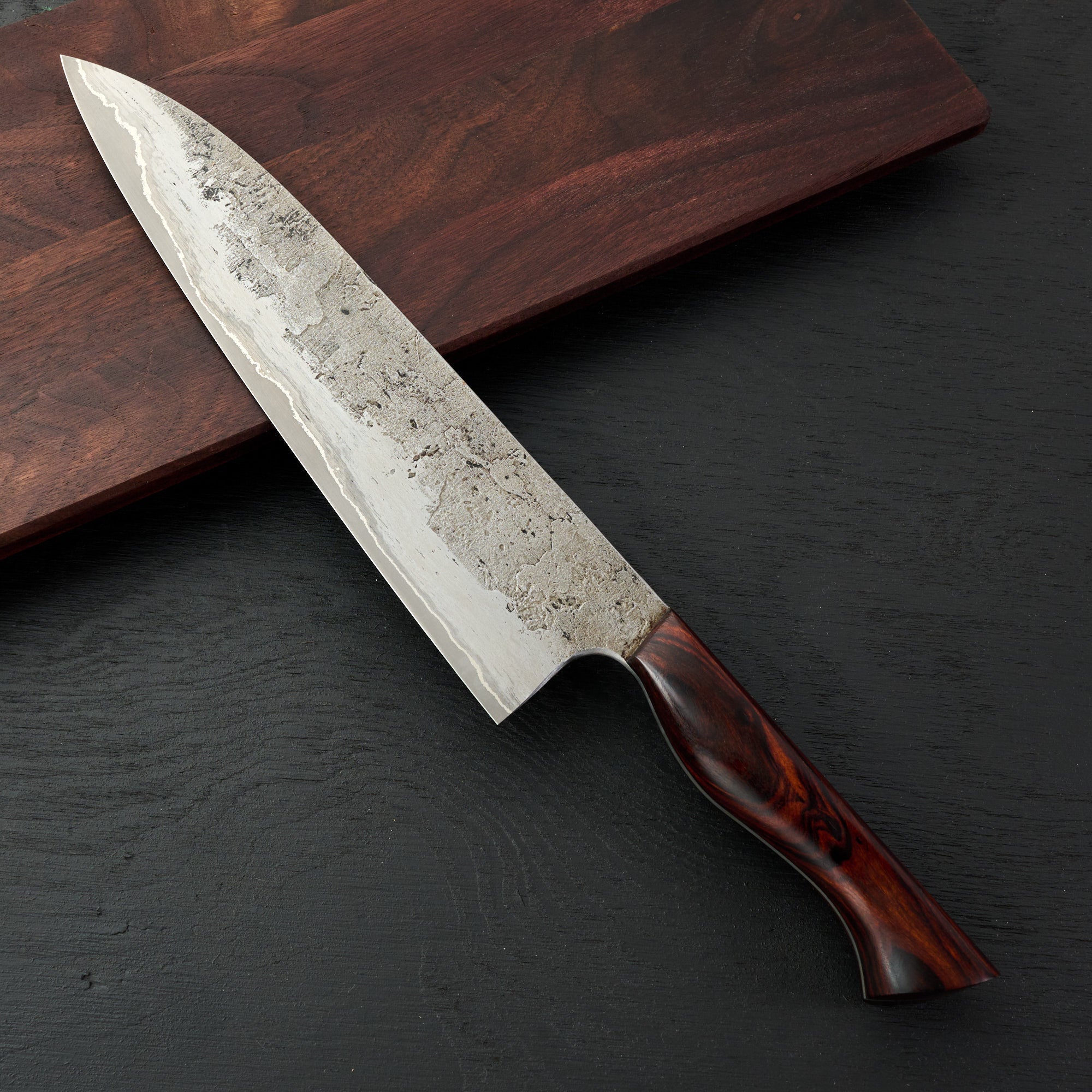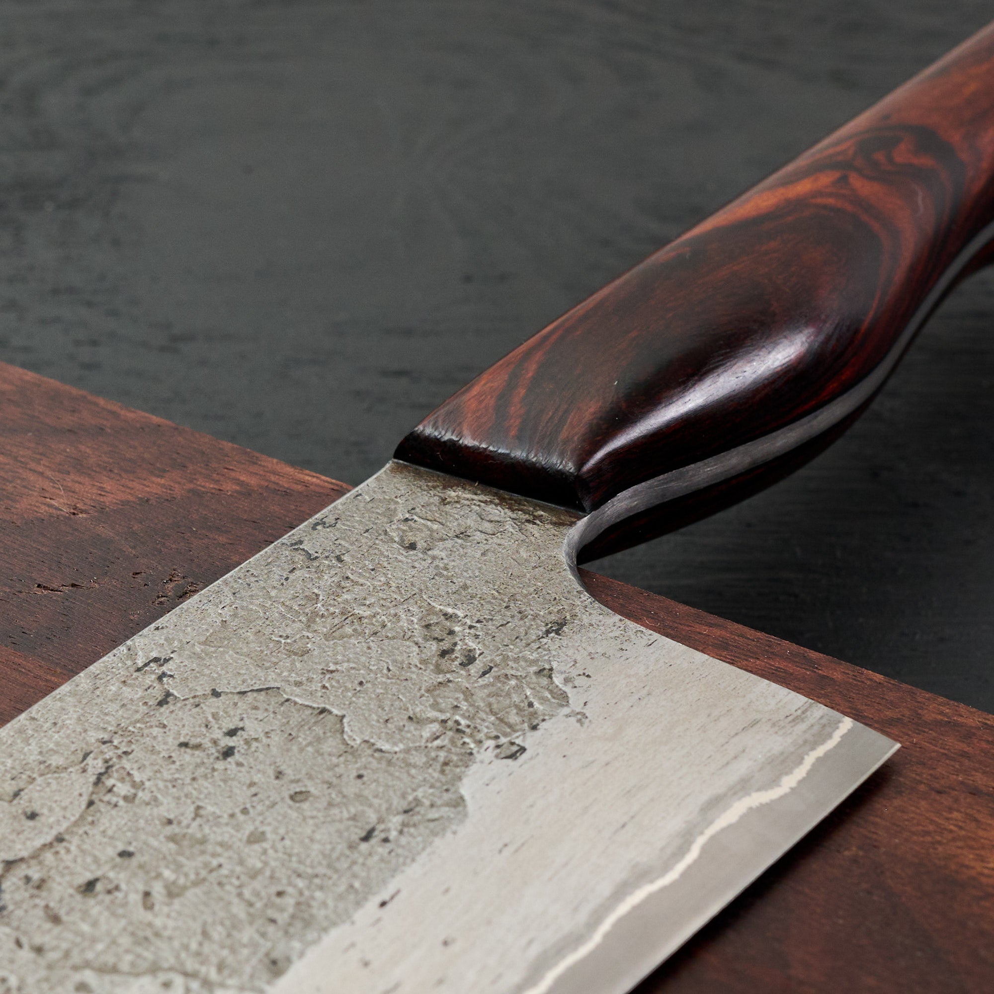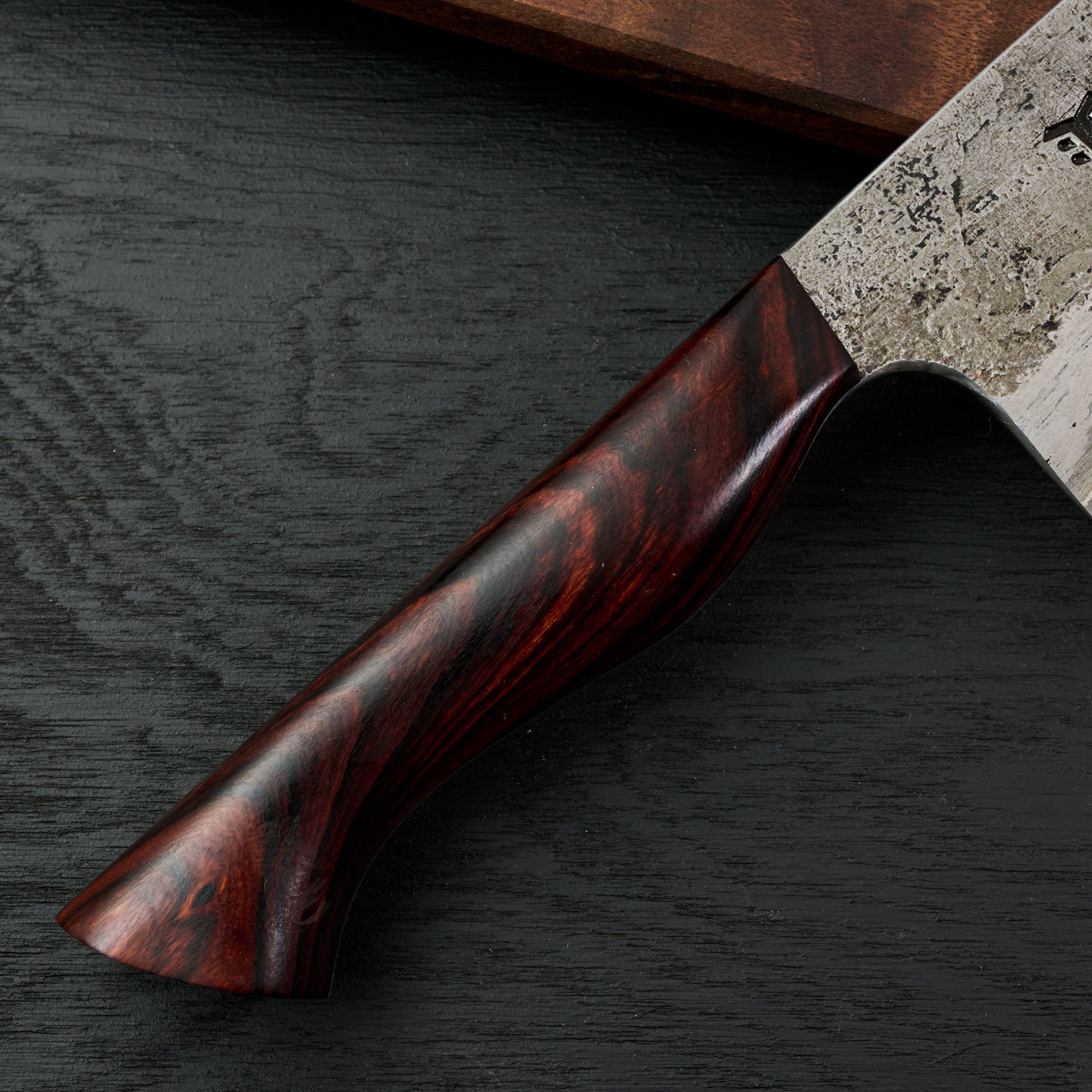 The Gyuto chef knife is the Japanese version of a western style chef’s knife. The blade is different in several ways, which give it different cutting characteristics to the western version. Gyuto blades have a flatter profile which lends itself to more of a chopping and slicing action. The western version features a more curved profile, which is great for a rock-chop style. Like the chef knife the Gyuto does have a curve in the blade, but it is less extreme. So, the Gyuto can also be used in a rock-chop style. Japanese Gyutos also have a thinner blade. So, unlike the western chef’s knife, the Gyuto is not made for cutting through joints in meat or hard material like frozen food. However, this does mean that these Japanese chef knives are typically sharper and lighter than the western version.