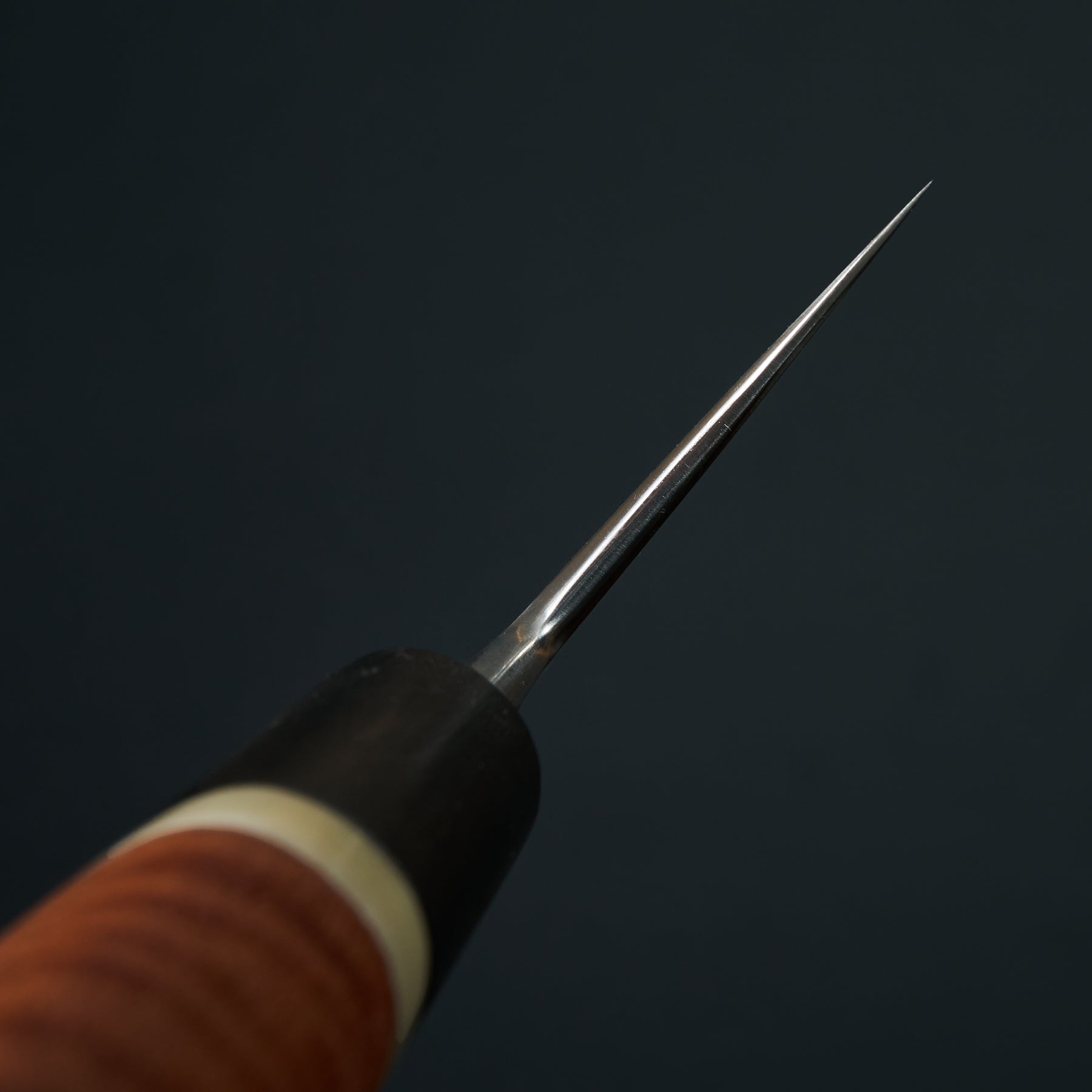 Handle Care: If you have a knife with a non-stabilised wooden handle, you can apply Tsubaki oil or another food safe oil to your handle from time to time. Food safe wax can be applied to both stabilised and no-stabilised wooden handles. Never apply hot wax or oil as you risk warping or damaging the handle.