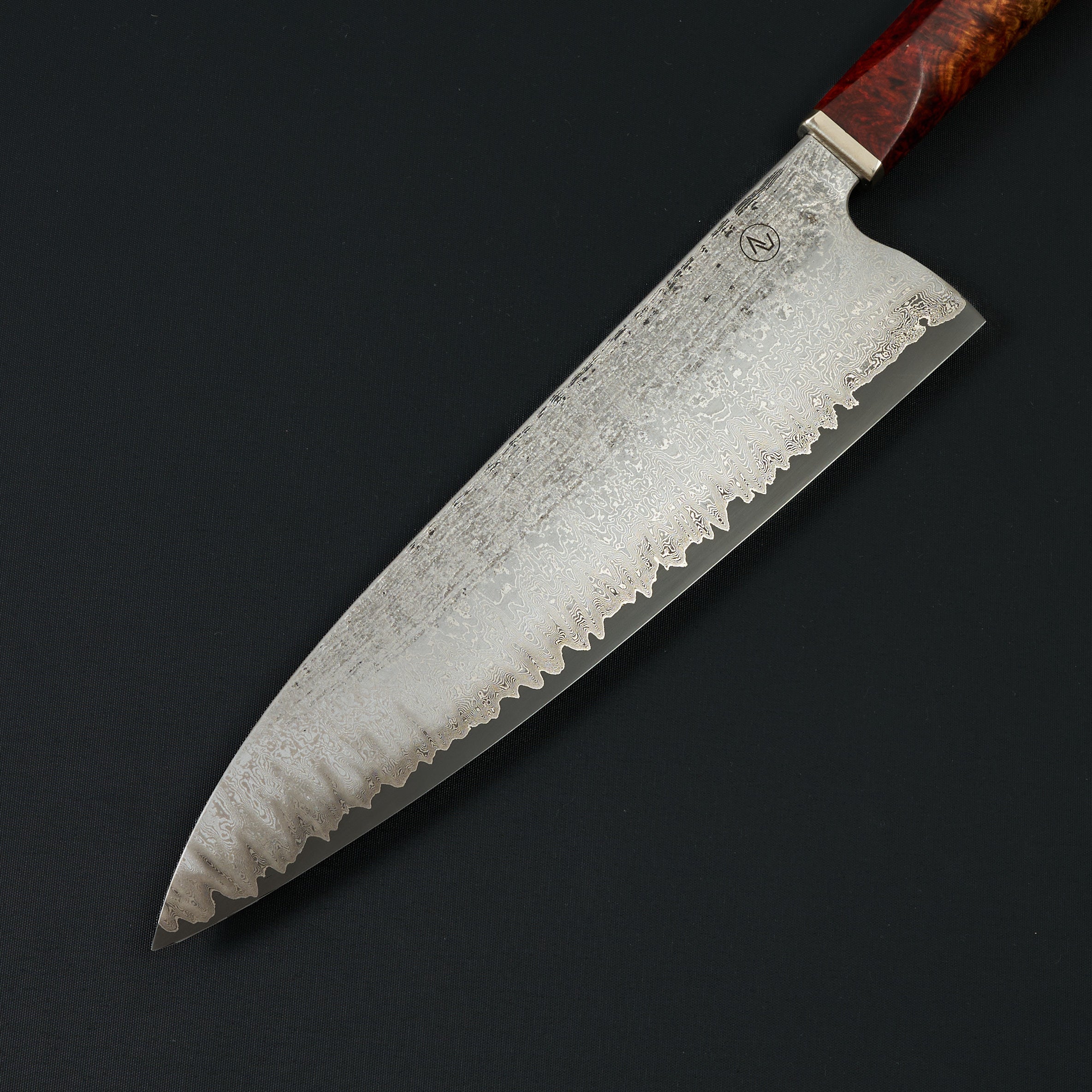Kitchen knives, alongside swords, represent the pinnacle of bladesmithing in his view. Swords demand absolute precision in mass distribution and balance at scale, while kitchen knives allow no margin for error—any misstep in geometry or heat treatment becomes immediately apparent in the hands of a skilled user. While his own cooking remains refreshingly modest, Noitz values the act of preparing food for others as a meaningful, shared experience. A well-made knife becomes an extension of that gesture: a tool that carries time, intention, and care. It is this connection—between maker, user, and meal—that gives his work its quiet, lasting appeal.