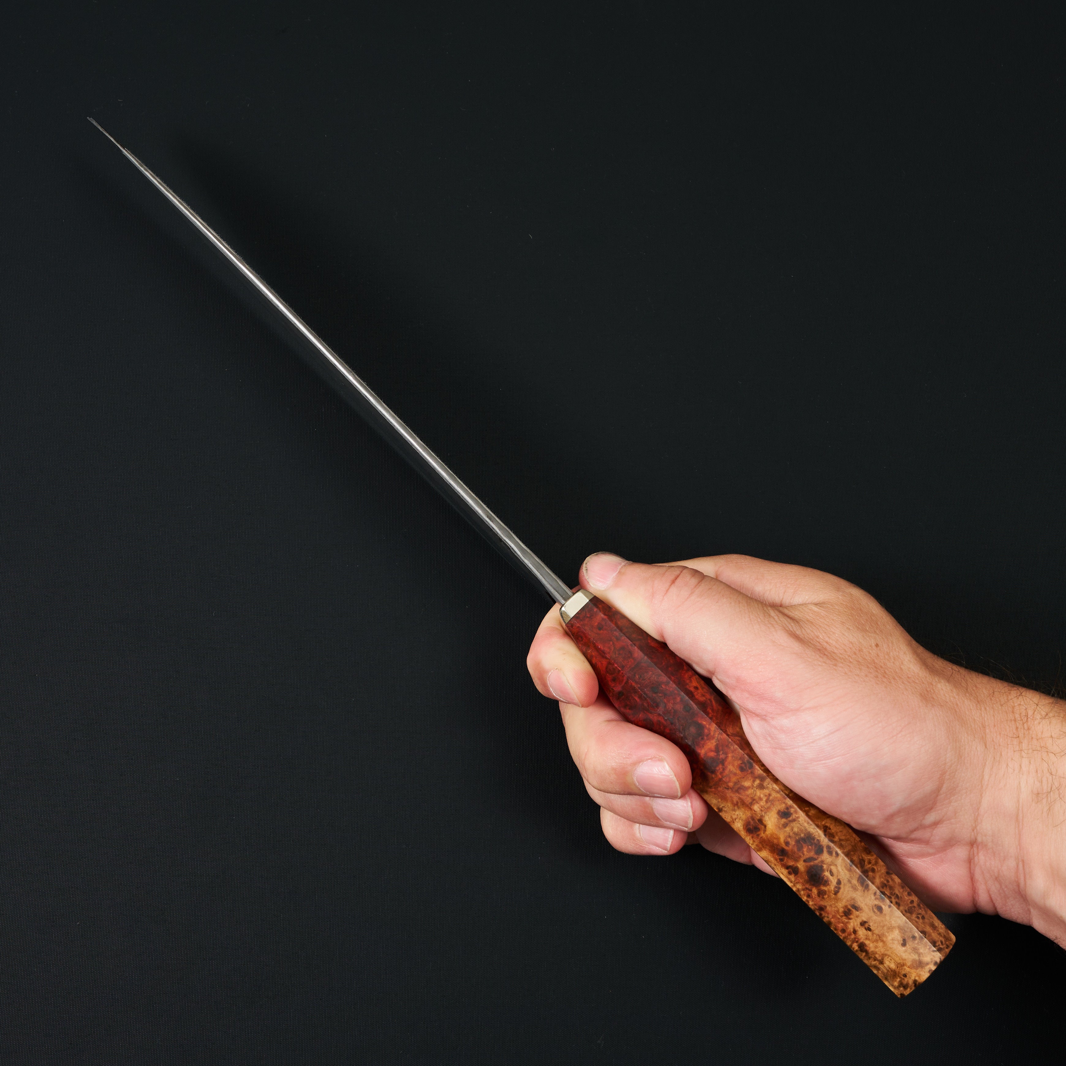 At the heart of his work lies a philosophy of balance. For Noitz, knife-making is a constant negotiation between edge geometry, heat treatment, handle ergonomics, and overall design—each parameter influencing the next. There is no single formula; instead, the balance shifts depending on the intended task of the knife. This approach is not treated as a stylistic hallmark, but as a baseline requirement of serious craftsmanship. The resulting knives feel deliberate and composed, prioritising performance and usability over excess or ornamentation.